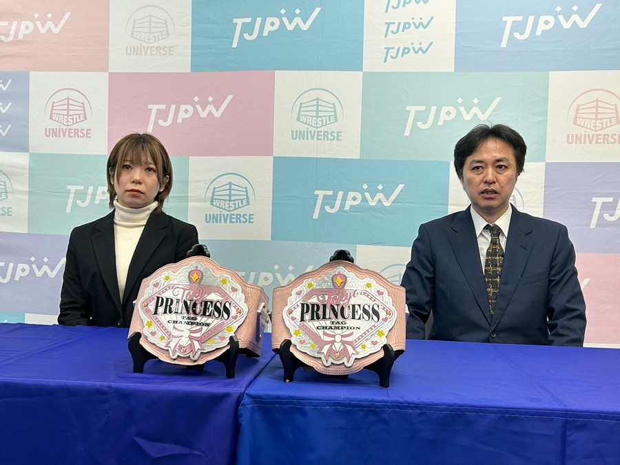 続いて甲田代表から1・4後楽園ホール大会にてプリンセスタッグ王座の第15代王者組を決める辰巳リカ&渡辺未詩、鈴芽&遠藤有栖、水波綾&愛野ユキによる3WAYタッグマッチがアナウンスされた(1・6新宿FACEを含めたほかの変更カードは「ニュース」参照)。最後に質疑応答へ。