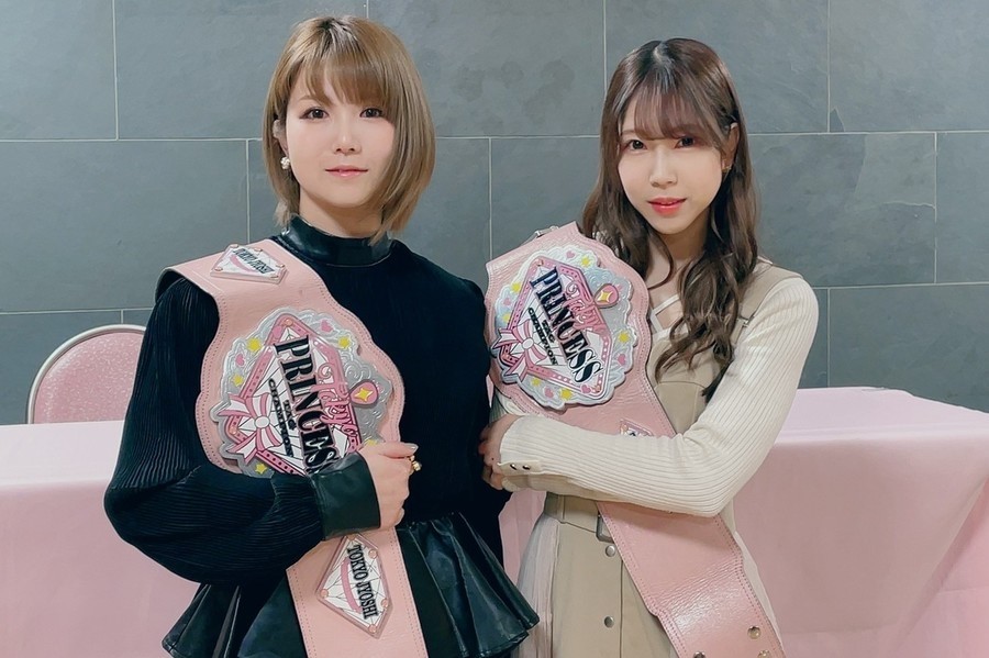 26日、東京・神田明神で記者会見がおこなわれ、11・25後楽園ホール大会で、山下実優&伊藤麻希の“121000000”(ワン・トゥー・ミリオン)を下してプリンセスタッグ王座の初防衛に成功した“マジカルシュガーラビッツ”(マジラビ)の坂崎ユカ、瑞希が一夜明けた心境を語った。
