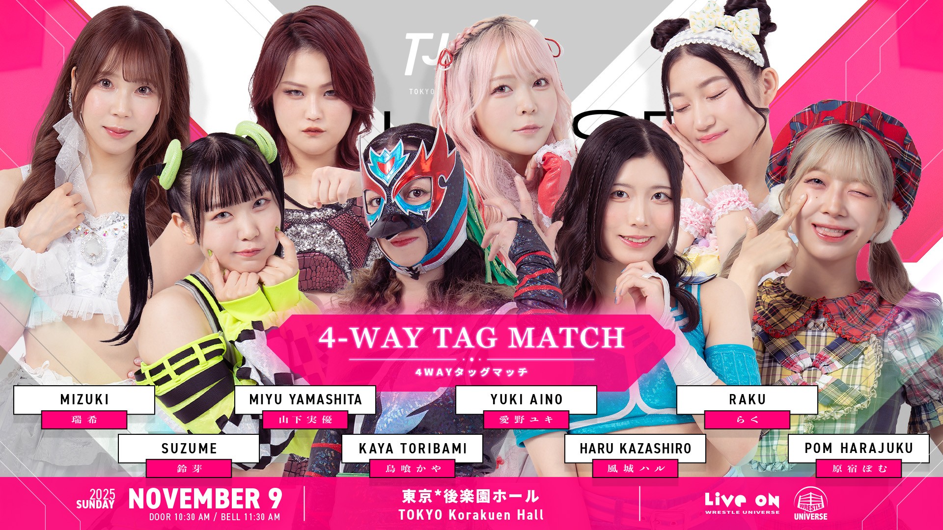 瑞希&鈴芽 vs 山下実優&鳥喰かや vs 愛野ユキ&風城ハル vs らく&原宿ぽむ