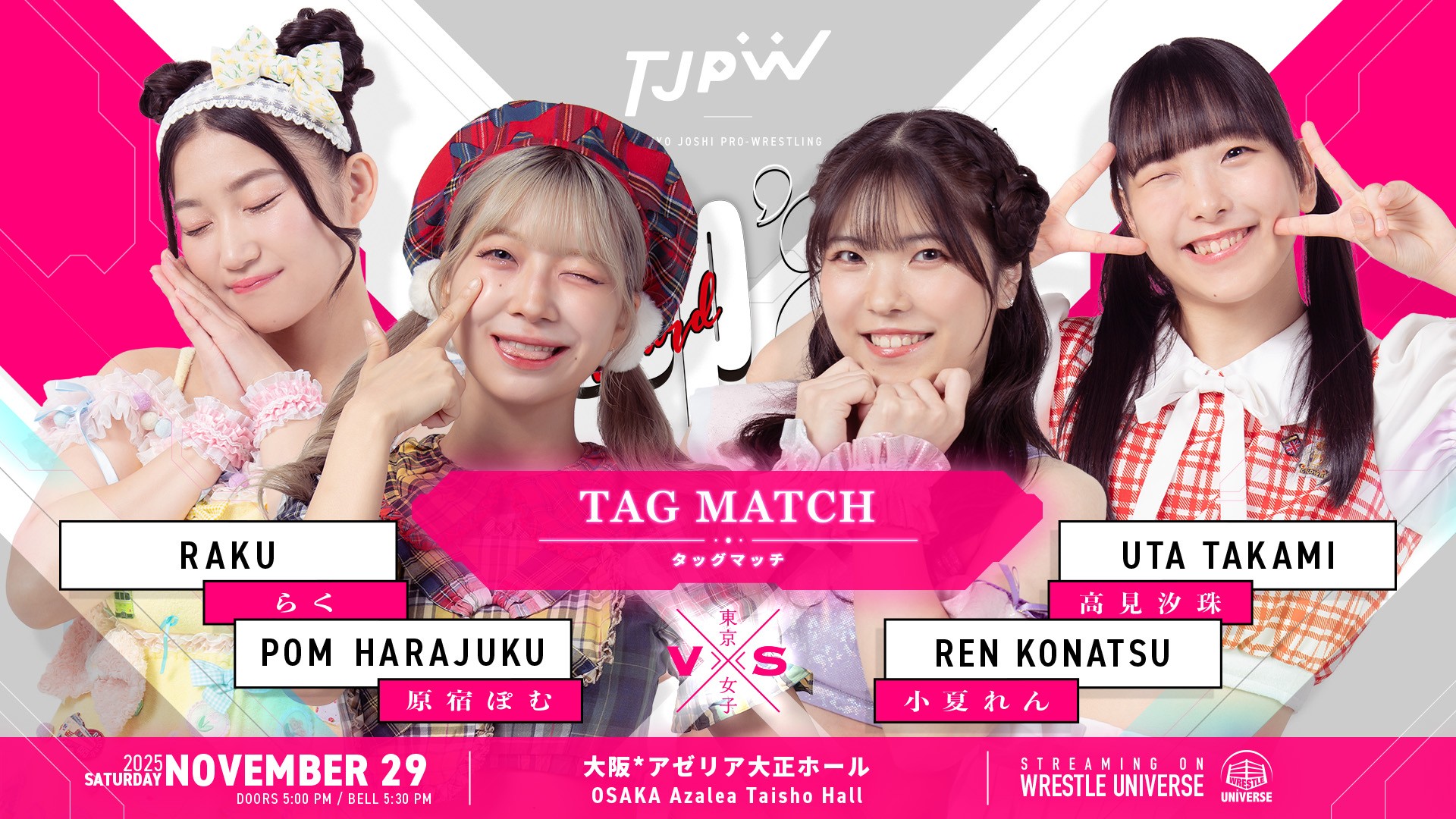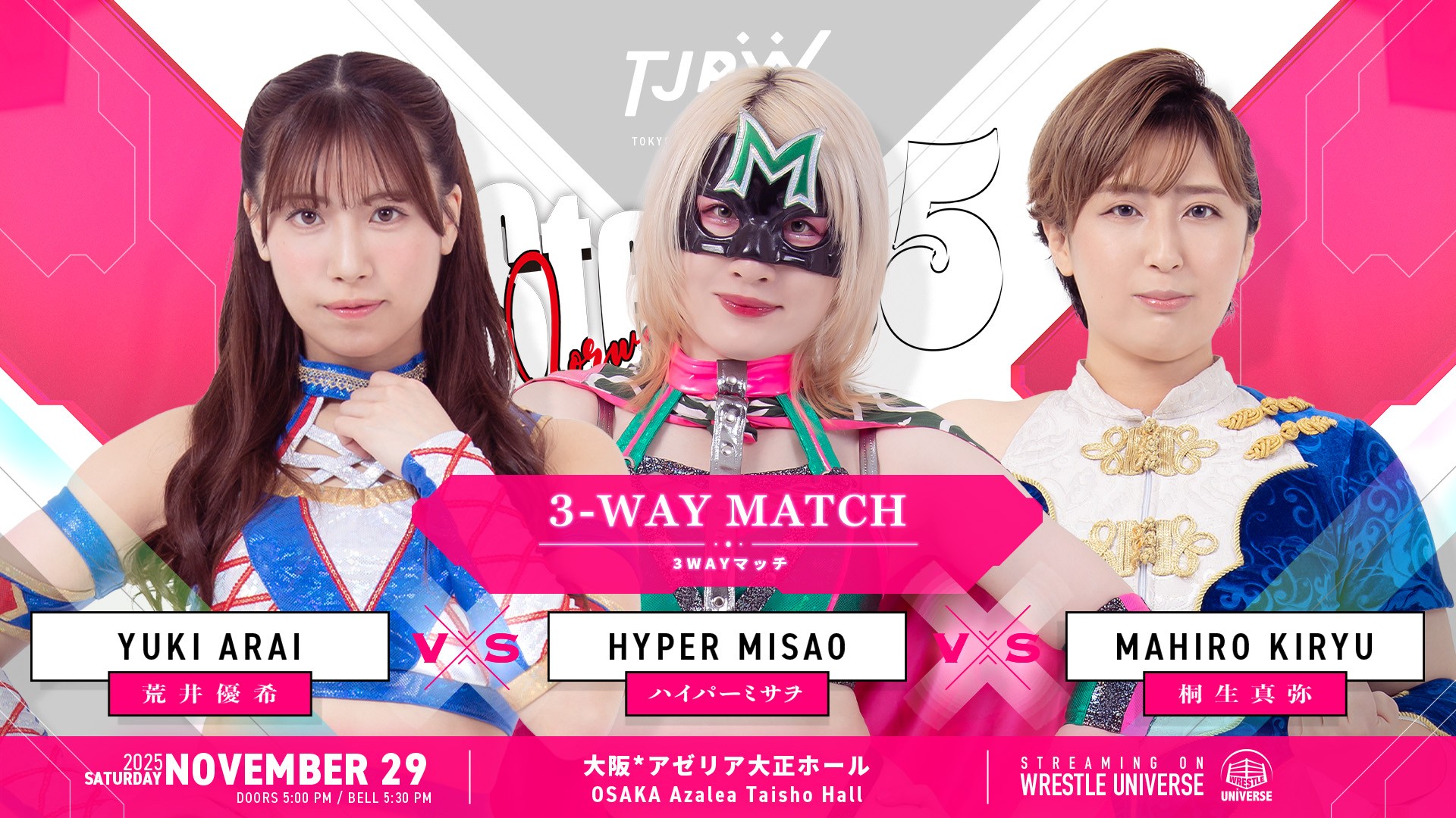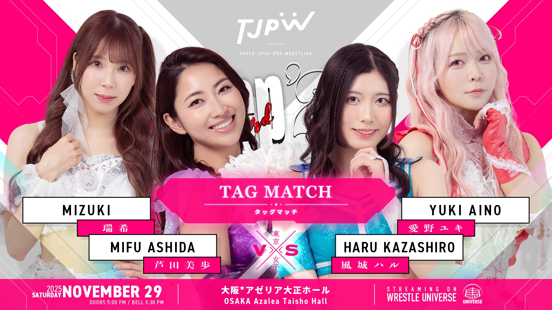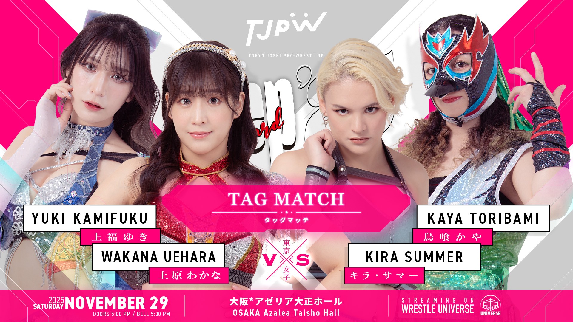 ○WRESTLE UNIVERSEや取材メディアによる写真・動画撮影がおこなわれ、会場内のファンの方が映りこむ場合があります。それらはWRESTLE UNIVERSEの配信、取材メディアによるテレビ、雑誌、WEBなどに露出・掲載される場合があります。あらかじめご了承ください。