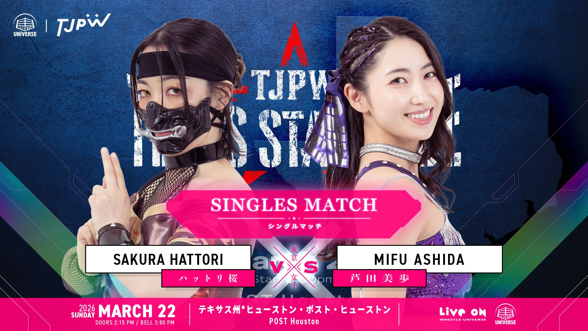 現地時間3月17日(火)オースティン大会にてハットリ桜(はっとり・さくら)がデビューします。