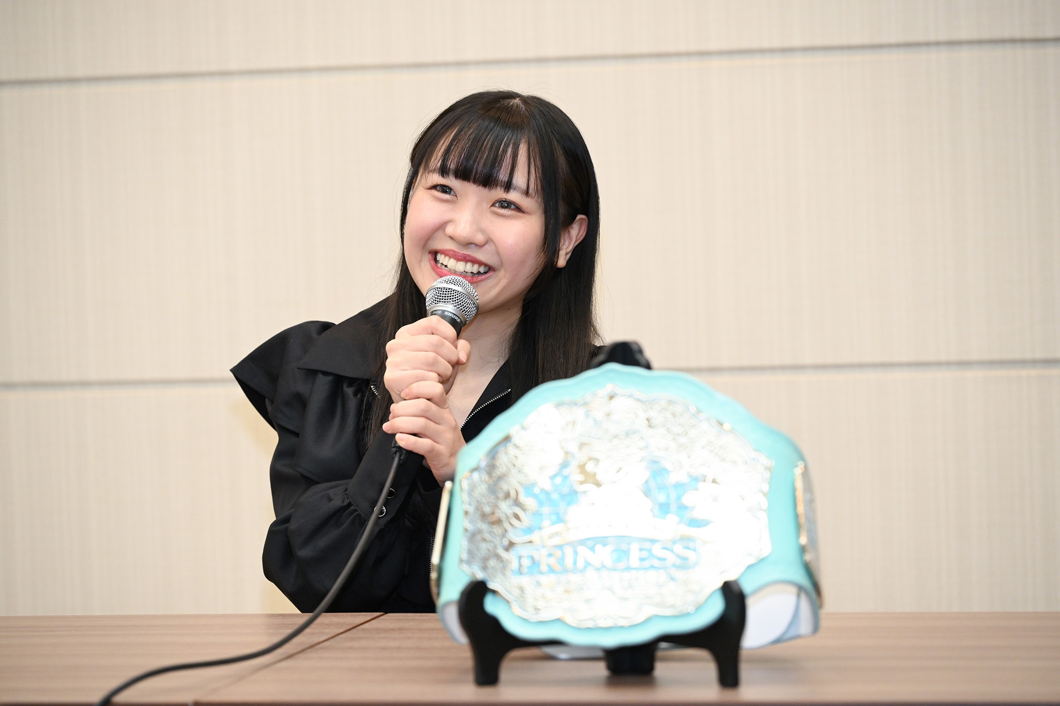 30日、東京・品川プリンスホテルにて東京女子プロレス記者会見が白井李世リングアナウンサーの司会進行のもとおこなわれた。昨日、MIRAIに勝利し、第17代インターナショナル・プリンセス王者となった鈴芽が出席し、一夜明けたコメントを出した。
