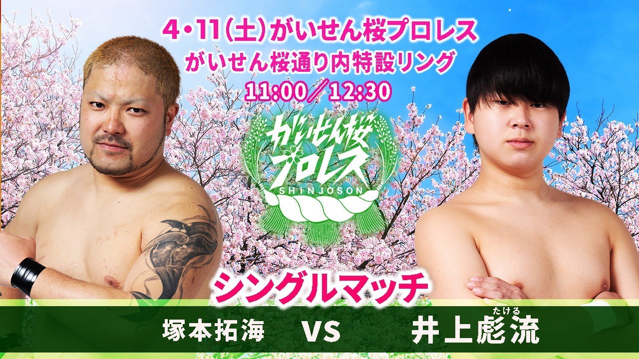 4月11日(土)岡山県真庭郡新庄村のがいせん桜通り内屋外特設リングで開催される『がいせん桜プロレス』とは、岡山県新庄村で農業を営む元TJPWの天満のどかさんとプロレスリングBASARAの関根龍一の夫婦が企画・開催するプロレスイベントです。2024年4月に初めておこなわれ今回は2年ぶり2度目の開催となります。