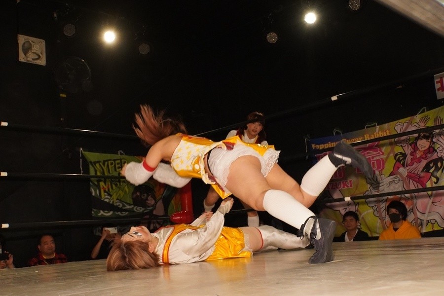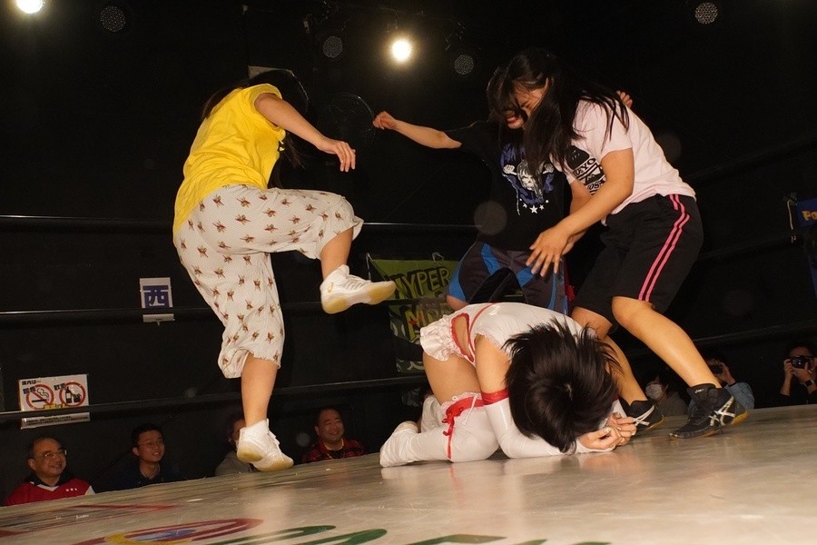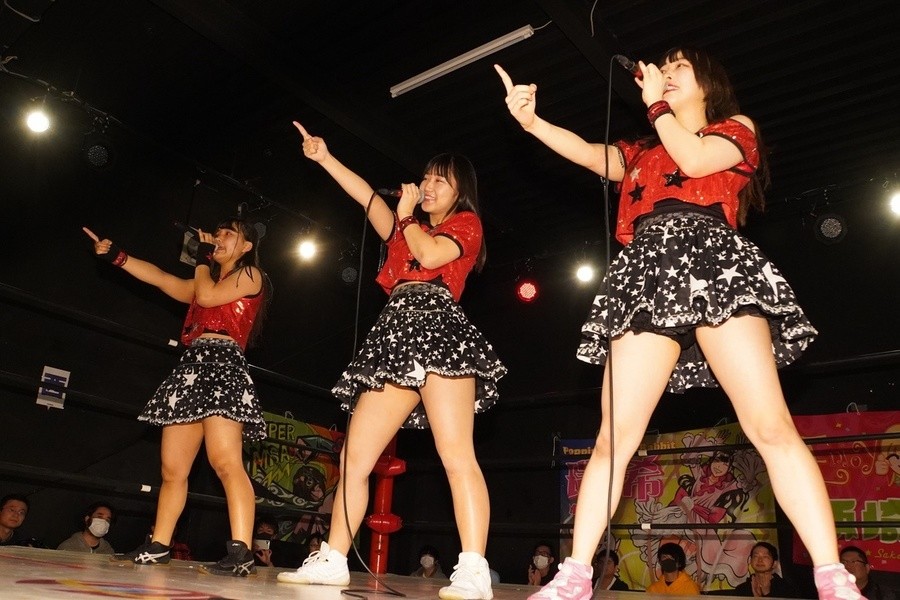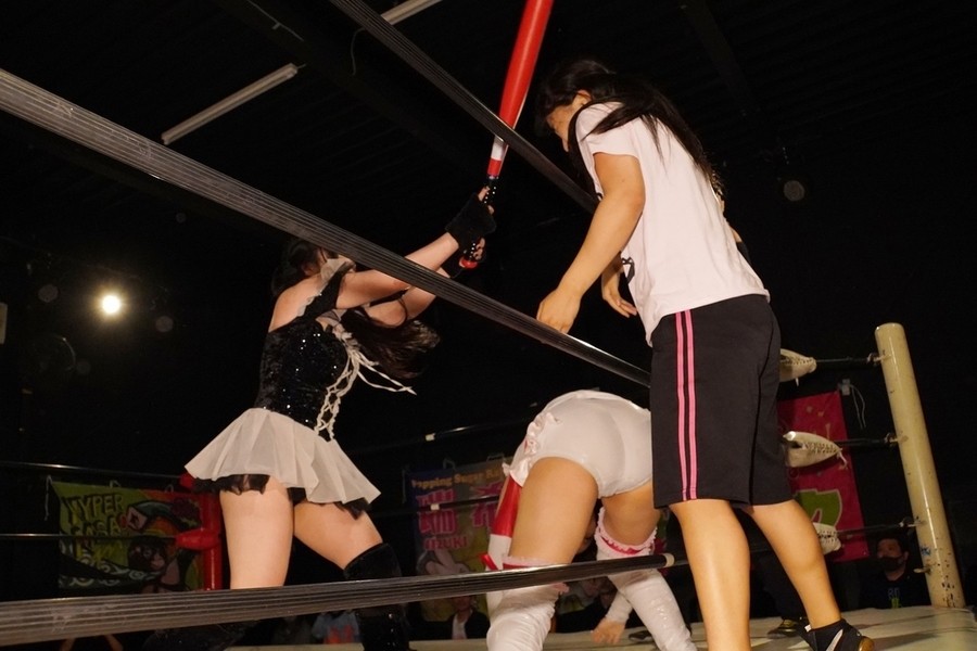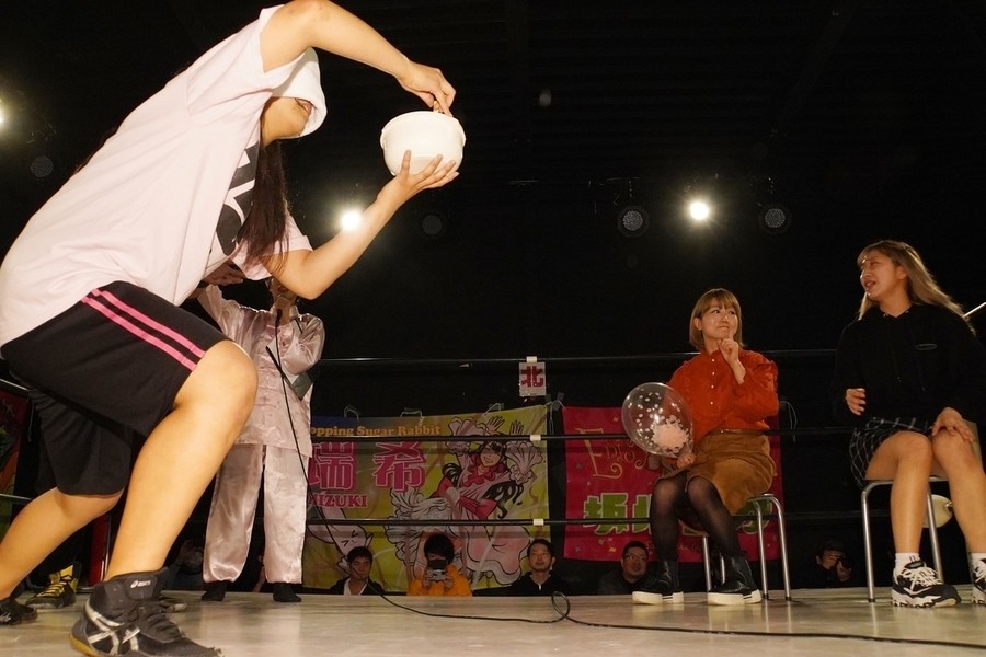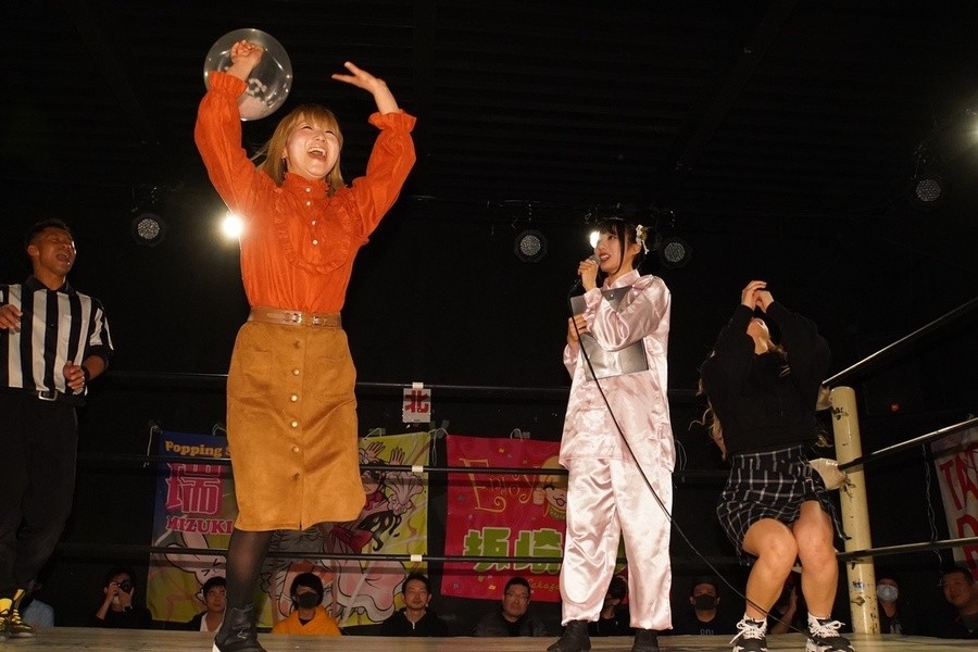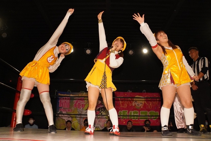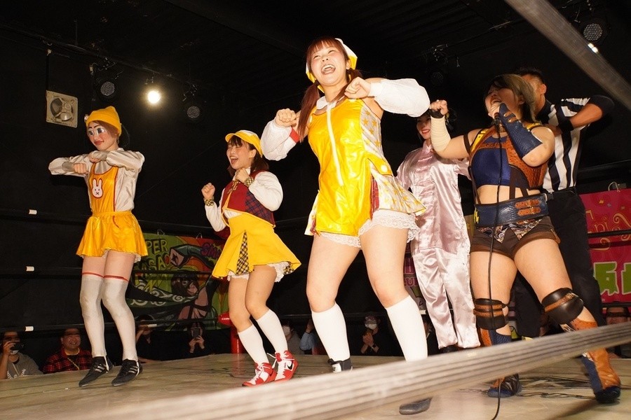 中島、ハイパミ、ユキが欠場し、代わりにのどかおねえさんが3人出場! “スペシャルゲストアイドル”にアプガプロレス!