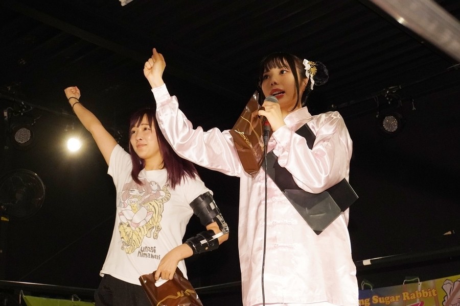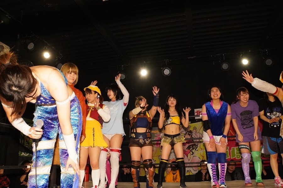 ルールを忘れていた山下は悔しがるが、あとの祭り。勝った真弥はマイクを取ると「勝ちましたー! まさか…まさかFC興行、2大会連続でマイクを持つことになるとは……」と、やや動揺しながらも瑞希から「真弥のお陰だ!」と言われると笑顔を見せる。そして全選手を呼び込むと、三人ののどかおねえさんをチラリと見た真弥は「これからも東京女子、“こういう感じ”で(観客笑)もっともっと大きくなっていくので、皆さん引き続き応援よろしくお願いします! 本日はありがとうございました!」と挨拶して4回目のFC会員限定興行を締めくくった。