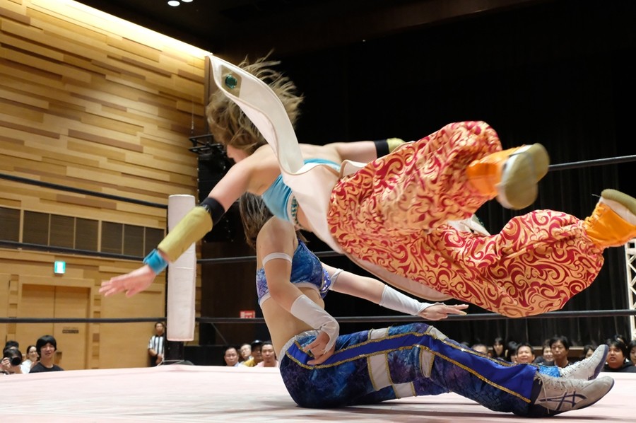 ※スライディング・ラリアット。もう1人は舞海魅星。