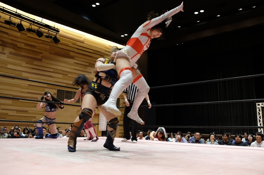 未詩にショルダーアタックで倒された操がチョーク攻撃。離れ際に沙希様がエプロンからミドルを入れて交替。沙希様の鋭い蹴りが未詩に襲い掛かる。未詩もカウンターのボディースラムで叩きつけてらくとタッチ。沙希様にらくは水面手刀で転ばせておやすみエクスプレス。一度起きてきてしまった沙希様をブレーンチョップで再び寝かせて決めてみせたがカウント2。ロープに向かって走ったらくを操がリング下から足引き。美軍が連係で襲い掛かる。ローンバトルを強いられたらくだったが、沙希様へのフェースバスターでようやく逆転。替わった未詩がショルダーアタック連発。カナディアンは沙希様が脱出してビッグブーツからジャンピングミドル。操が出てきてニーアタック。未詩も操をキャッチして叩きつけるとジャイアントスイング10回転。そこから逆エビに持ち込むも沙希様がジャンピングミドルでカット。美軍の連係から操がカバーもカウント2。未詩は2人まとめてボディースラムで投げてらくとタッチ。らくがMAXとき2連発。ダイビング・ブレーンチョップを放つがカウント2。らくはおやすみスリーパー。操はコーナーに潰す。それでもあきらめないらくに操がチキンウイング・フェースロックで捕獲。さらにリベラ・メに持ち込むも未詩がカットしてレーザーチョップ。沙希様は未詩にJK。エプロンに出すと操がランニングニー。場外に落ちた未詩に沙希様がエプロンPK。らくが丸め込み連発からブレーンチョップ、ロシアンスイープもカウント2。操がカウンターのニー。最後はヴァニタスでフォール勝ち。
