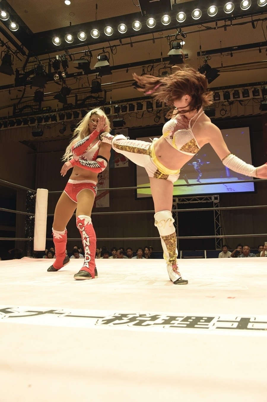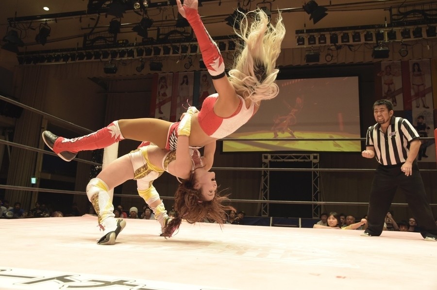 グラウンドの攻防から万喜がスクールボーイ、エビ固め。蹴りはお互いかわす。シャエイクハンドからジゼルが手を離さずアームホイップ。ボディスラムは万喜が側宙でディフェンスしドロップキック。ヘアーホイップは2発。ジゼルが蹴りで反撃するとブレーンバスター。サッカーボールキックはカウント2。ボディシザース、チンロックからキッチンシンクを放つジゼル。コーナーにホイップして叩きつけ、場外では鉄柱を使って腰を攻める。ボディシザース、ボディブローとジゼルは集中攻撃。顔面にも蹴りを打ち込むと「ビッチ!」と挑発。万喜はエルボーからバックキックで反撃。エルボーの打ち合いで万喜は「負けるか!」と雄叫び。連打からドロップキックも5連発。スライディング式もヒット。コーナー最上段からはダイビング・クロスボディ。トラースキックをスライディングでかわしたジゼルは前方へのローリングネックブリーカーから飛びついてのカッタ。万喜はトラースキックを返すがコーナー最上段でハイキックをくらい、さらにジゼルがスパニッシュフライ。なんとか2で返す万喜。ジゼルはマウントポジションからナックル連打。しかし万喜はコーナーに登ろうとしたジゼルにジャーマン。ジゼルは裏拳。万喜はトラースキックからバックラッシュ、フォールにはいかずにジャーマンで3カウント。万喜が初代王者に。ベルトを巻いた万喜は、投げ込まれた紙テープを手に巻きつけてファンへの感謝をアピール。