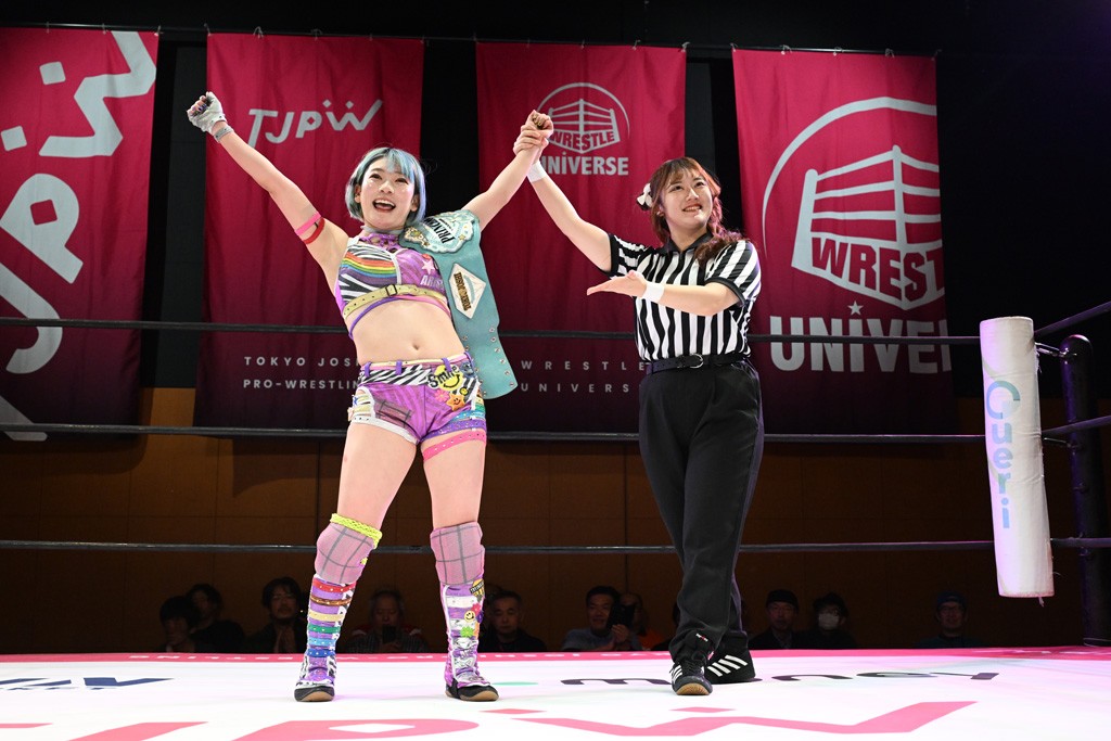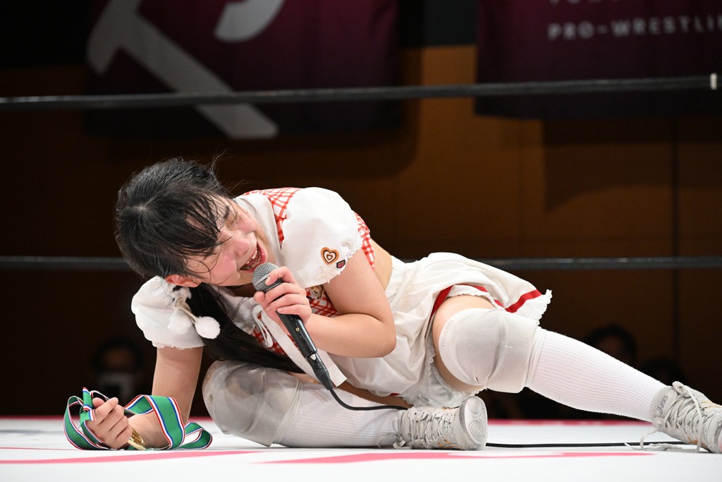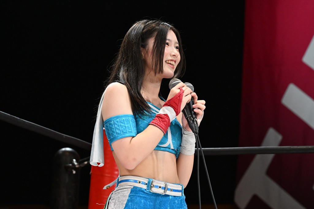 志乃 HIMAWARIさん帰ってきて、一緒に闘えて勝つことができたので。これはベルト取れるね。絶対取れると思った。ですので、この勢いは後楽園ホールまで絶やさず、もっと勢い加速して頑張りたいと思います。