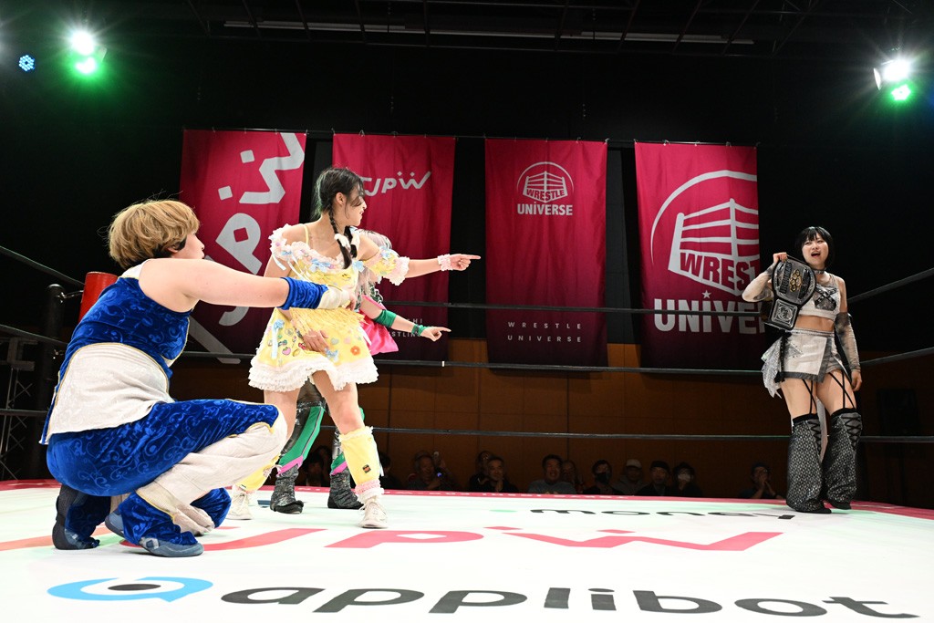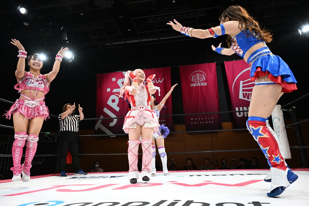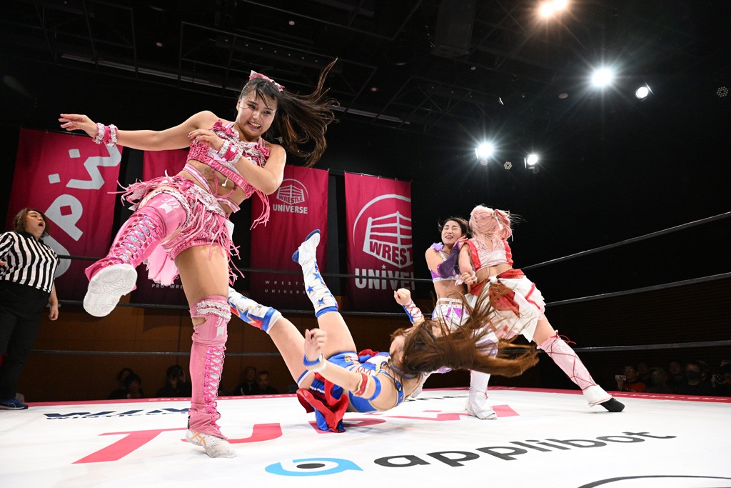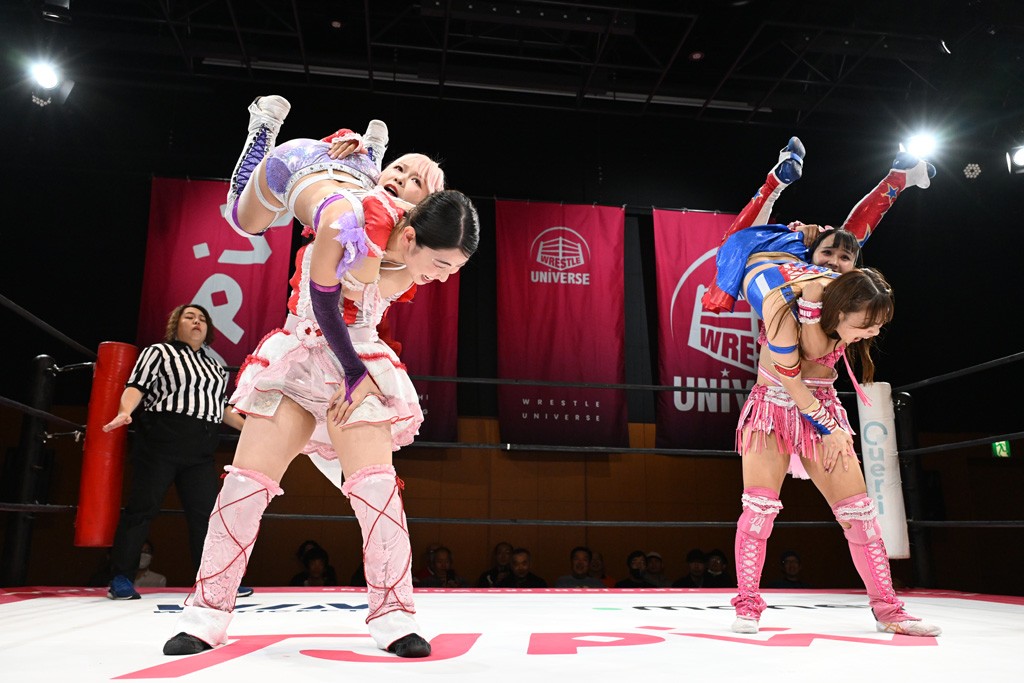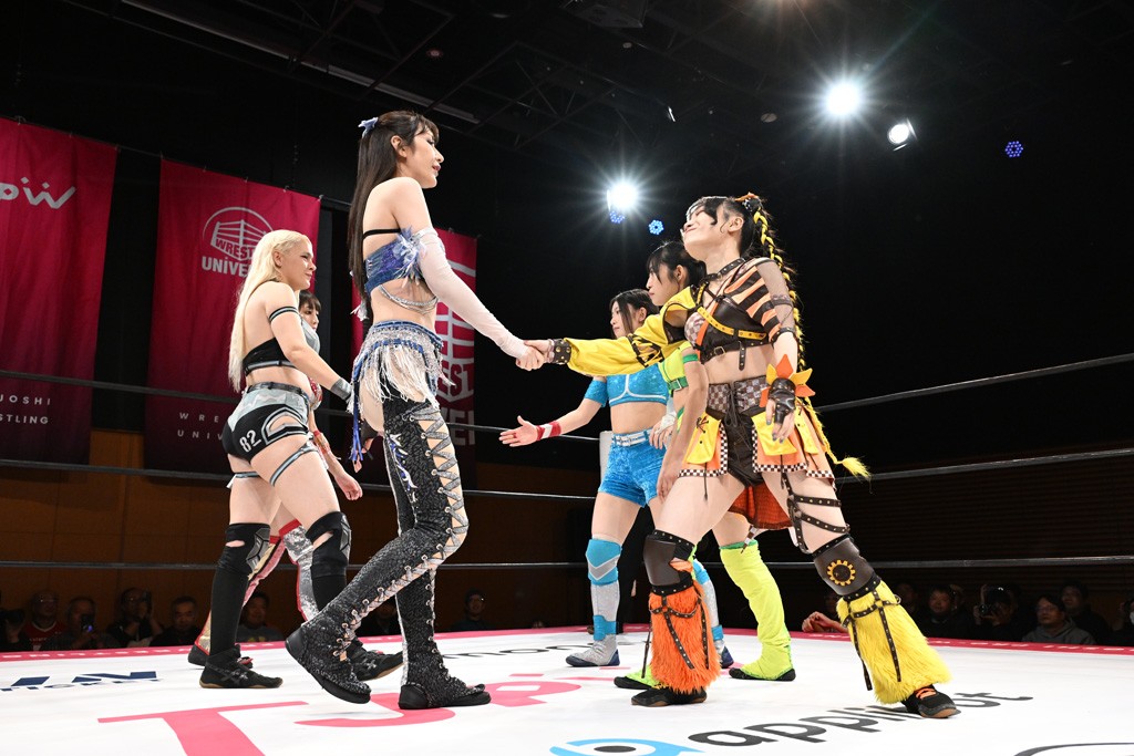 Ober EatsとHIMAWARI&志乃はプリンセスタッグの前哨戦。志乃が先発を買って「Ober Eats出てこい!」と挑発するも、Ober Eatsは乗らず、キラとの対戦で開始のゴング。志乃がドロップキックで先制してキラに観光案内からHIMAWARI、志乃が串刺し攻撃も上福が志乃の攻撃を止めに入ってキラがクローズライン。志乃はバックエルボーでなんとか返してハルと交替。キラはハルにショルダーアタック連発。上福が出てくると串刺しビッグブーツ。ここからハルがローンバトルも、キラにドロップキックを決めてピンチを脱出。替わったHIMAWARIが一気呵成の攻め。お姫様落としはキラがかわしてショルダースルー。上福がドロップキックで続く。卍固めはHIMAWARIがロープエスケープ。ヤッホー83cmはカウント2で返す。HIMAWARIはビッグブーツをかわしてお姫様落としを決めて志乃と交替。志乃のエルボー連打に上福はビッグブーツ一発で返す。志乃が意地のドロップキックもカウント2。上福は逆水平からブレーンバスター。上原が出てきてドロップキックで続く。側転エルボーからのカバーはカウント2。スナップスープレックスは志乃が丸め込みで返してドロップキックを放つ。上原もドロップキックでやり返すとバナナピローへ。これはHIMAWARIとハルがカット。Ober Eatsは志乃に合体式フラップジャック。志乃もベリー・トゥ・ベリーで上原にやり返してHIMAWARIとタッチ。上原もキラと交替。キラがバックドロップ。これはカウント2。キラが逆エビ固めでギブアップを迫る。これは志乃がカット。その志乃を上原はスナップスープレックス、ハルがその上原にドロップキック、上福がハルに裏フェイマサーで排除。最後はHIMAWARIがキラをサン・フラワーテンペストで下した。