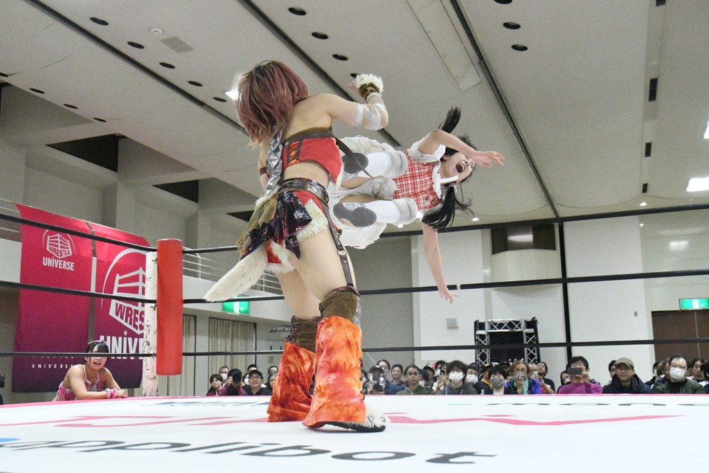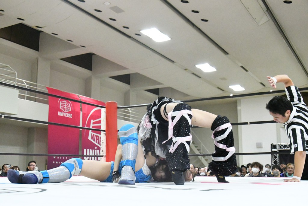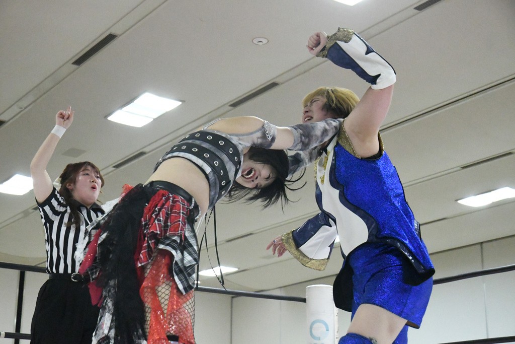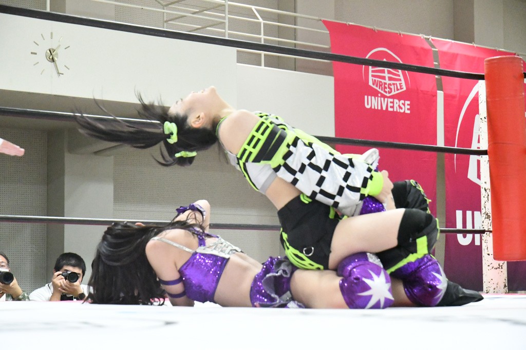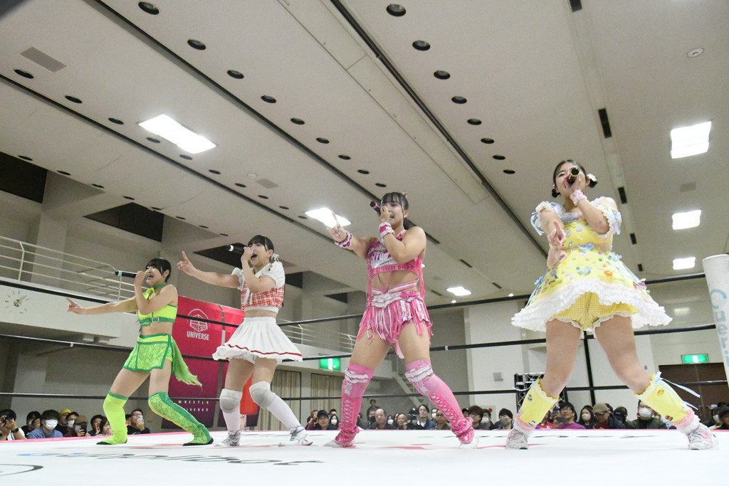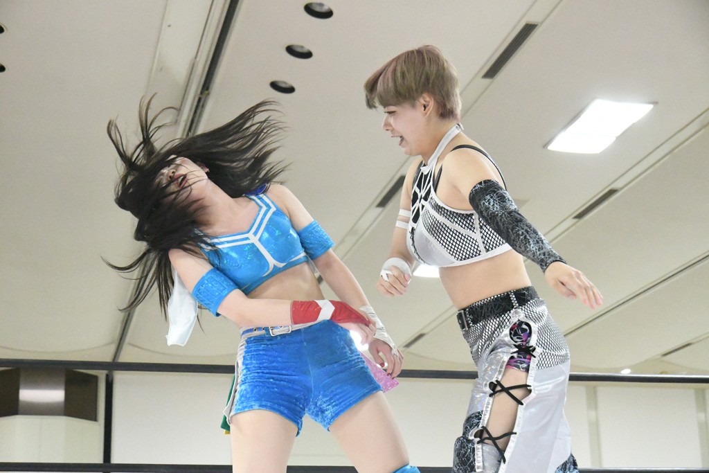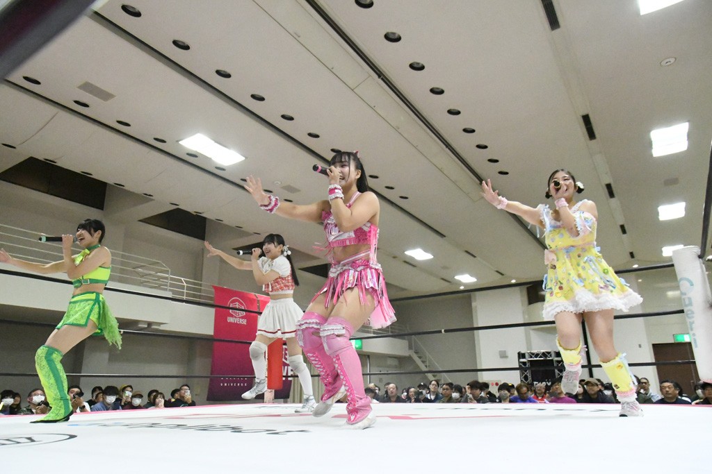 まず汐珠が入場し、多くの紙テープが投げ込まれる。その後、中島組、未詩とリングイン。汐珠が先発を買うと場内は「ウタ」コール一色。バックの取り合いから腕の取り合い、そしてHIMAWARIをロープに飛ばしてのドロップキックで未詩と交替。HIMAWARIはロングヘアを振り回して未詩を威嚇し、中島とタッチ。未詩がモンキーフリップを決めれば、中島はウラカンホイップで投げ飛ばす。未詩がショルダースルーからショルダーアタックを放って汐珠とタッチ。しかしここから汐珠がローンバトル。苦しい汐珠だったがバックエルボーでHIMAWARIを止めるとドロップキックを放ってピンチを脱出。未詩が一気呵成の攻め。HIMAWARIも負けじとローリング・ネックブリーカーを放って中島と交替。中島のボディーシザースホイップを未詩が途中で止めて担ぎ上げ直すと振り子式バックブリーカー。カナディアン・バックブリーカーを抜け出す中島をロープに飛ばしてからのポップアップ式のジャイアントスイング。汐珠が出てきてこの勢いに続かんとするが、エプロンサイドに出されるや中島が金具に汐珠の腹部をぶつけて動きを止める。場内「ウタ」コール。なんとかリングに戻った汐珠に中島は羽根折り固め。起き上がった汐珠が片足を首に引っ掛けて投げ飛ばす。中島とHIMAWARIの連係は未詩が阻止してHIMAWARIにショルダーアタック、同時に汐珠は中島にドロップキック。未詩のカナディアン・バックブリーカーと汐珠のコアラクラッチの二重奏。これは中島がロープに逃げる。汐珠が振り子式ドロップキックもカウント2。中島に場外に落とされるがトペ・スイシーダ狙いは未詩がパワースラムで阻止。汐珠がすかさずロープに駆け上がるが反転式ミサイルキックを決める前に転落も気を取り直してドロップキック。しかしカウント2止まり。再度のコアラクラッチは中島が振り解く。汐珠が丸め込み連発も決め手にならず。場内「ウタ」コールの中、汐珠がエルボー連打も中島に一発で返されてしまう。中島はライダーキック、619、ノーザンライト・スープレックスのフルコースで汐珠を料理した。