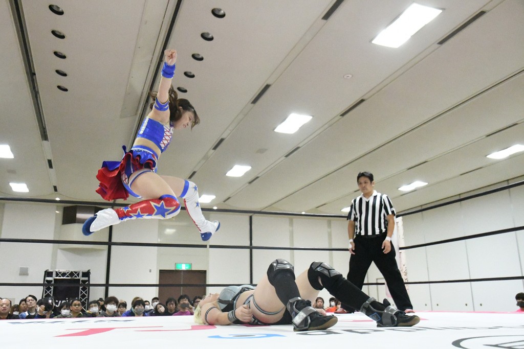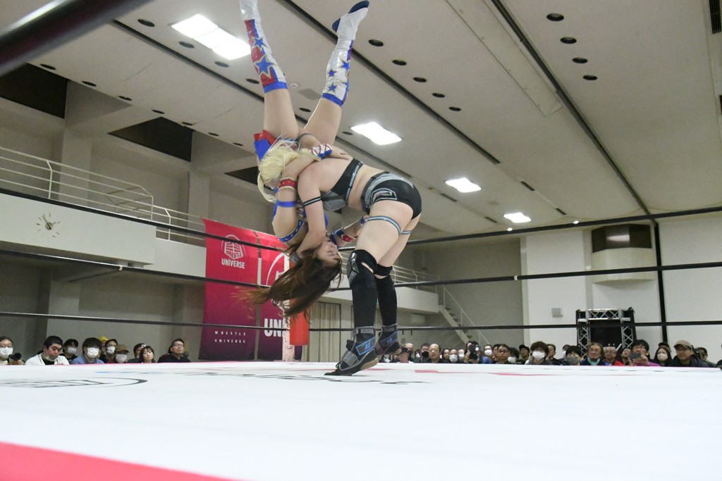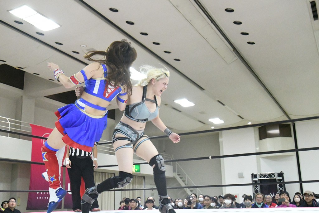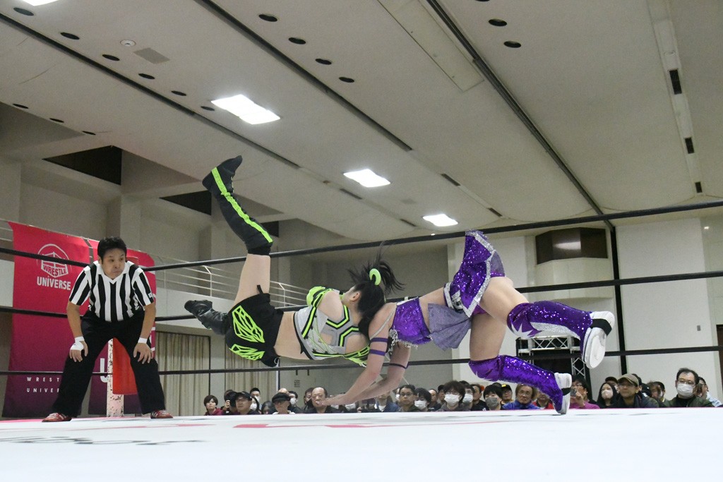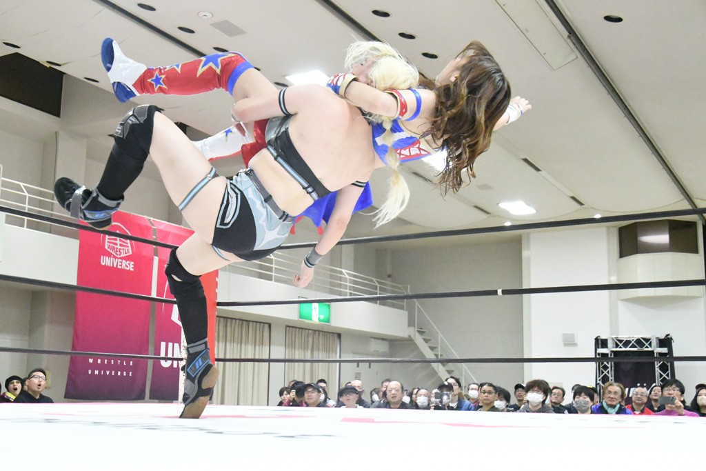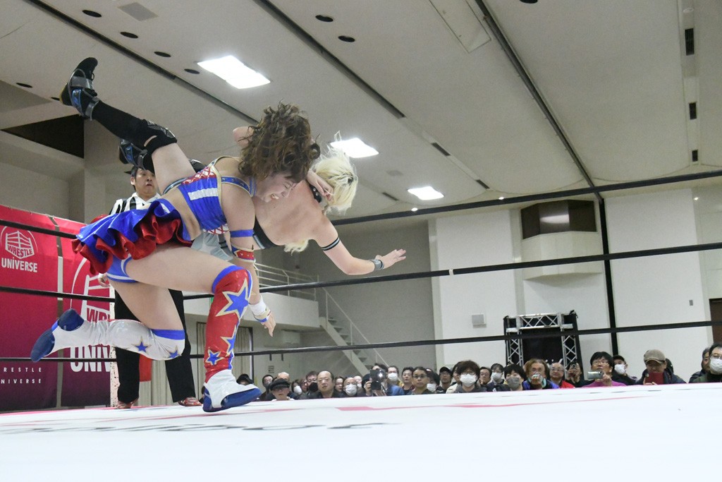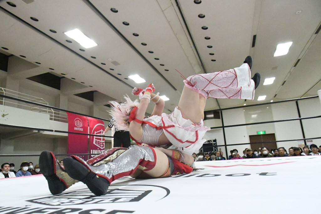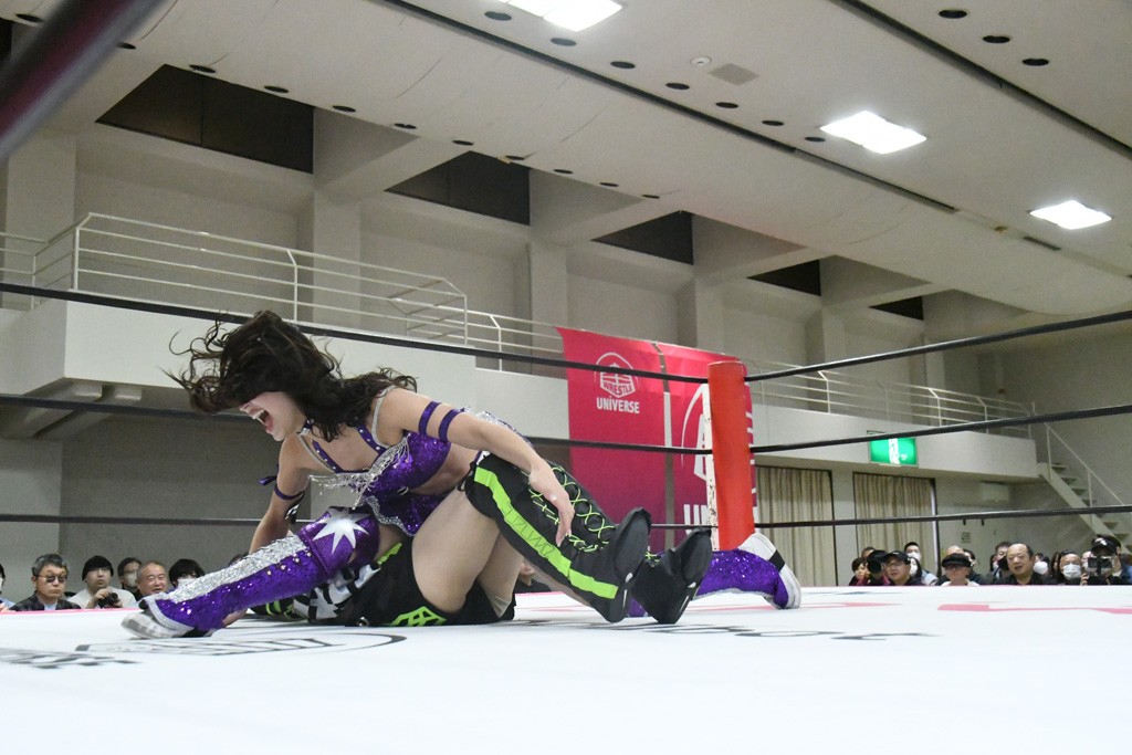 まず汐珠が入場し、多くの紙テープが投げ込まれる。その後、中島組、未詩とリングイン。汐珠が先発を買うと場内は「ウタ」コール一色。バックの取り合いから腕の取り合い、そしてHIMAWARIをロープに飛ばしてのドロップキックで未詩と交替。HIMAWARIはロングヘアを振り回して未詩を威嚇し、中島とタッチ。未詩がモンキーフリップを決めれば、中島はウラカンホイップで投げ飛ばす。未詩がショルダースルーからショルダーアタックを放って汐珠とタッチ。しかしここから汐珠がローンバトル。苦しい汐珠だったがバックエルボーでHIMAWARIを止めるとドロップキックを放ってピンチを脱出。未詩が一気呵成の攻め。HIMAWARIも負けじとローリング・ネックブリーカーを放って中島と交替。中島のボディーシザースホイップを未詩が途中で止めて担ぎ上げ直すと振り子式バックブリーカー。カナディアン・バックブリーカーを抜け出す中島をロープに飛ばしてからのポップアップ式のジャイアントスイング。汐珠が出てきてこの勢いに続かんとするが、エプロンサイドに出されるや中島が金具に汐珠の腹部をぶつけて動きを止める。場内「ウタ」コール。なんとかリングに戻った汐珠に中島は羽根折り固め。起き上がった汐珠が片足を首に引っ掛けて投げ飛ばす。中島とHIMAWARIの連係は未詩が阻止してHIMAWARIにショルダーアタック、同時に汐珠は中島にドロップキック。未詩のカナディアン・バックブリーカーと汐珠のコアラクラッチの二重奏。これは中島がロープに逃げる。汐珠が振り子式ドロップキックもカウント2。中島に場外に落とされるがトペ・スイシーダ狙いは未詩がパワースラムで阻止。汐珠がすかさずロープに駆け上がるが反転式ミサイルキックを決める前に転落も気を取り直してドロップキック。しかしカウント2止まり。再度のコアラクラッチは中島が振り解く。汐珠が丸め込み連発も決め手にならず。場内「ウタ」コールの中、汐珠がエルボー連打も中島に一発で返されてしまう。中島はライダーキック、619、ノーザンライト・スープレックスのフルコースで汐珠を料理した。