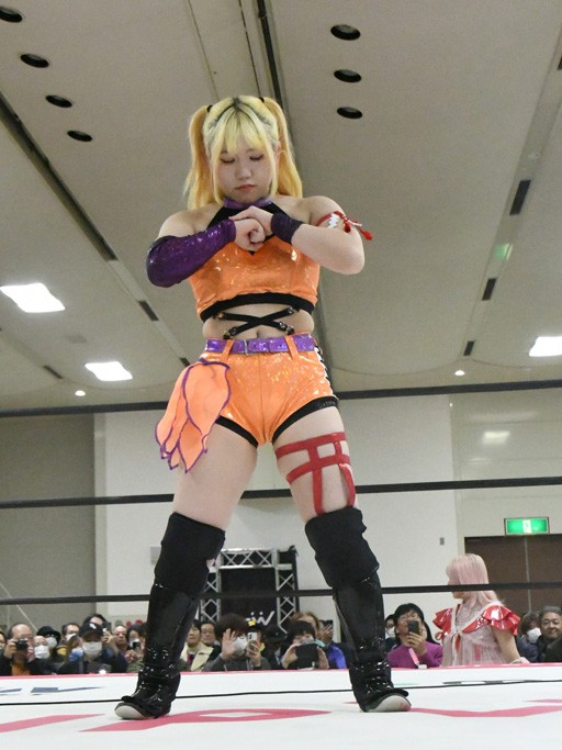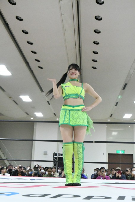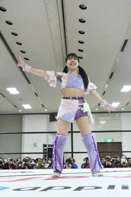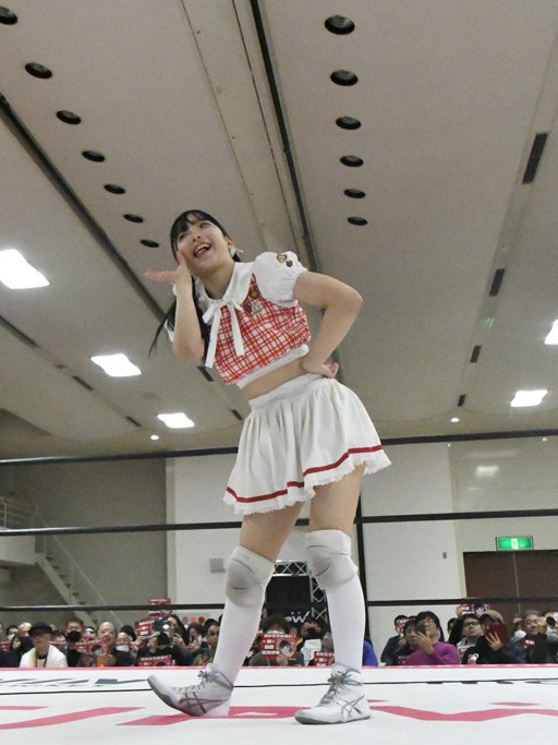 地元凱旋の汐珠にファンから「お帰り!」の声! アプガプロレスの歌のコーナーは『ラビュモット!』