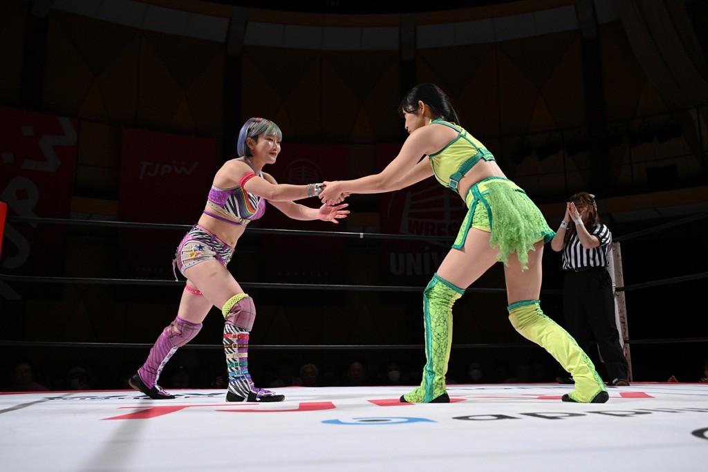 試合後、ハルが涙ながらにマイク。ハル「ユキさん、私の話を少し聞いてくれませんか。私は天満のどかでもなく、水波綾ではなく、風城ハルが、この先愛野ユキとしての人生を終わるその時まで、ずっと隣にいたいと思ってるんです。だからユキさん、私のタッグパートナーになってくれませんか?」ユキ「ハルがそうやって言ってくれるのをずっと待ってた。でも、一個約束してほしい。私とタッグ組んで、これから東京女子でもっともっと暴れて強くなっていく。そのために私を信じて、応援してくれるみんなを信じて、自分を一番信じてほしい。約束できる?」小指を出すユキにハルは「約束します」と指切りげんまんで応じる。ユキ「じゃあこれから一緒に、いろんな景色見ていこう!」ハル「はい!」