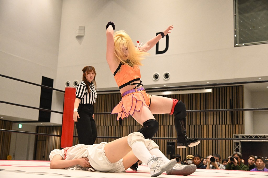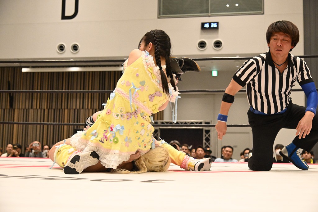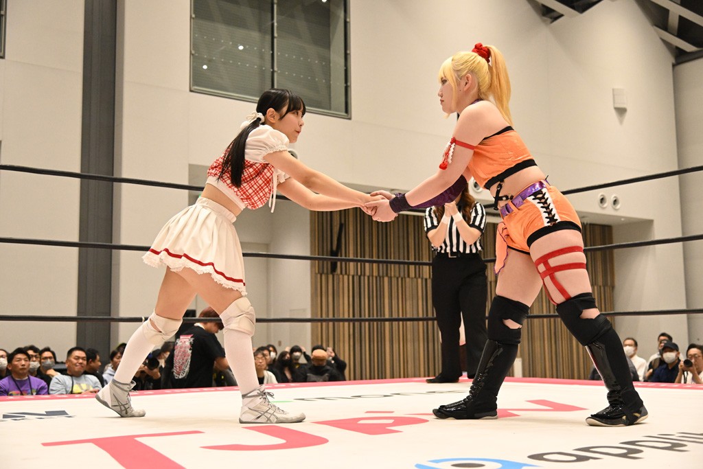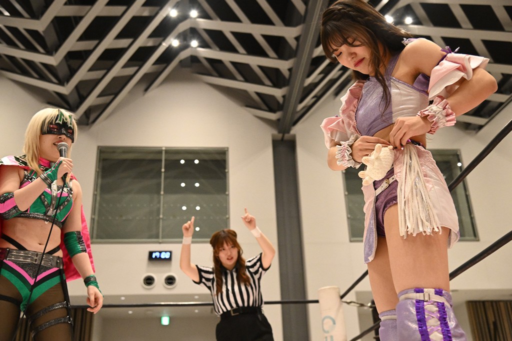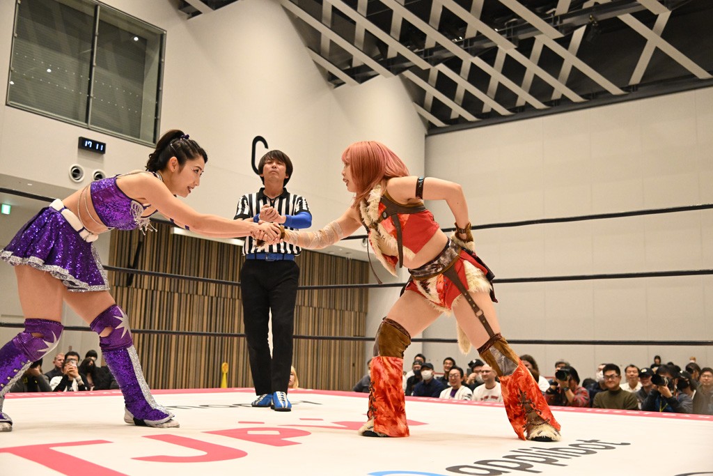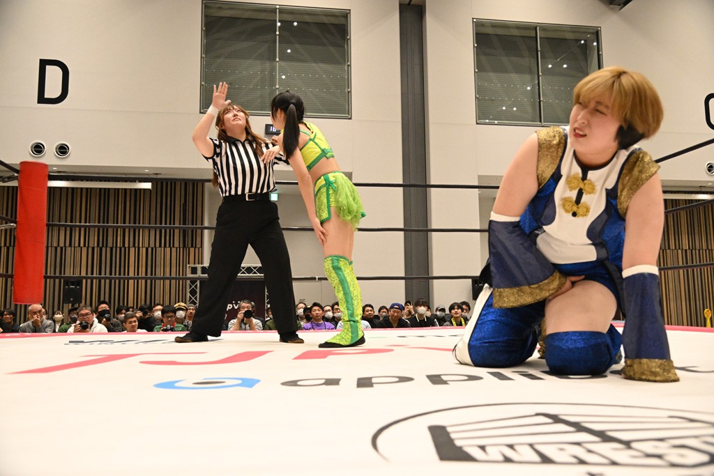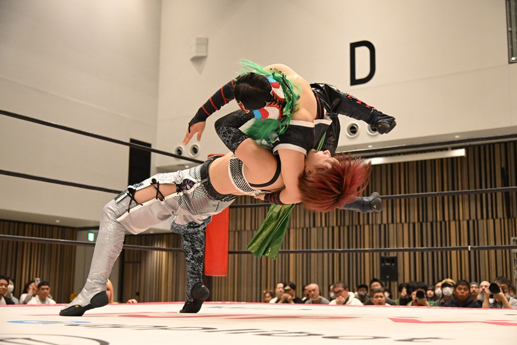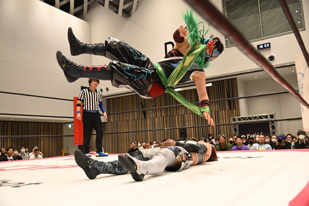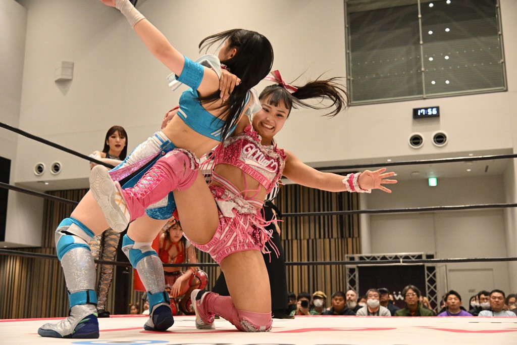 瑞希が両手を広げて握手を求めると、リカも応じる。だが、瑞希はトーキックで奇襲し、ここでゴング。速攻で丸め込んだが、カウント2。再び瑞希が握手を求めて握り返したリカにトーキック。突進をかわしたリカがロープ越しドラゴンスクリュー。さらに鉄柱を使って足を攻撃。ドロップキックは足を狙って決めていく。リングに戻ってよっしゃいくぞエルボーは自爆となるも、低空ドロップキック、ドラゴンスクリュー、足4の字固めとたたみかける。反転しながら瑞希がロープエスケープ。リカが足をロープにくくりつけてドロップキック。残り3分。バックブリーカーからのフォールをブリッジで脱した瑞希がフットスタンプ。ロープすり抜け式ドロップキック、コーナーダイブのフットスタンプはかわされたが、串刺しドロップキックで追い打ち。残り2分。セカンドロープに寝かせてフットスタンプからキューティースペシャル狙い。これをリカが切り返してドラゴンスリーパーへ。続くツイスト・オブ・フェイトからミサイルヒップ。かわされて瑞希のメテオラを浴びるも、カウンターのヒップアタックを決め、スライディングの一発も披露。追撃のツイスト・オブ・フェイトは瑞希が回転エビ固めで切り返すと、両者は丸め込みの応酬。カウント2。残り10秒でリカがドラゴンスリーパーに捕獲するも、タイムアップ。試合後は瑞希が握手を求め、リカが握り返すとトーキックを入れて引き上げていった。