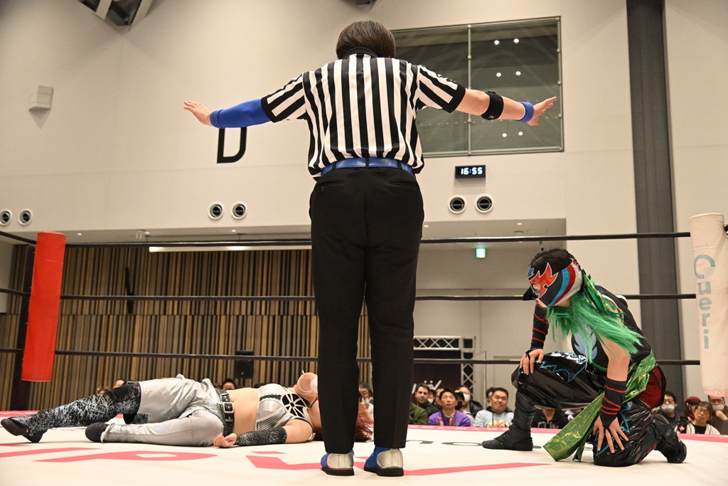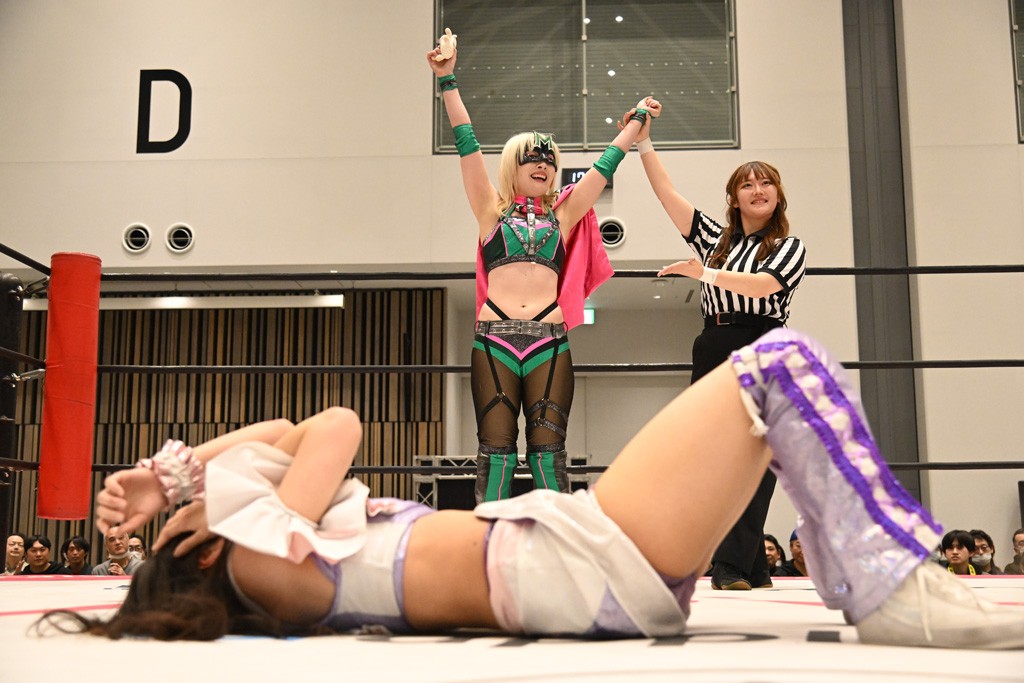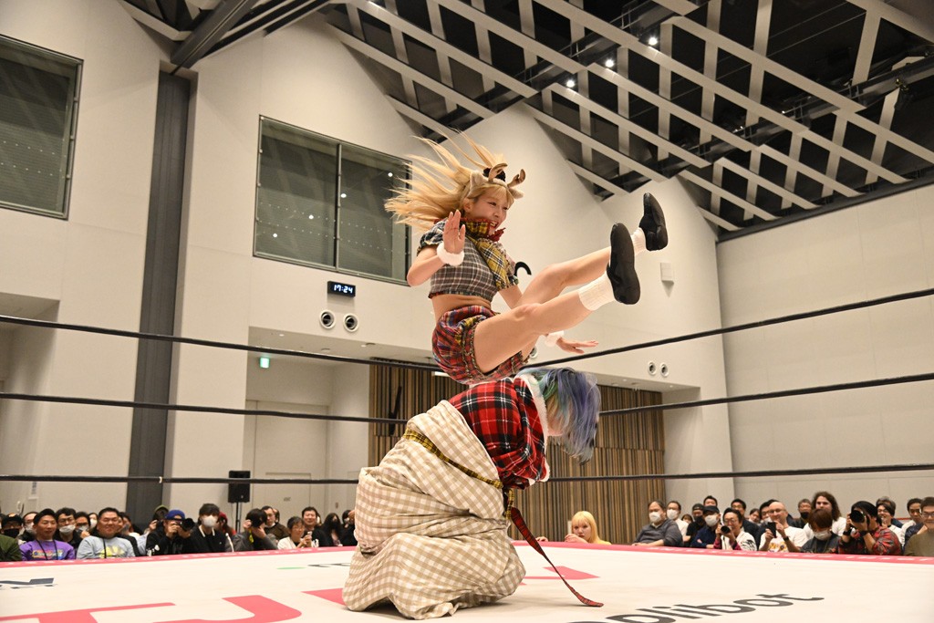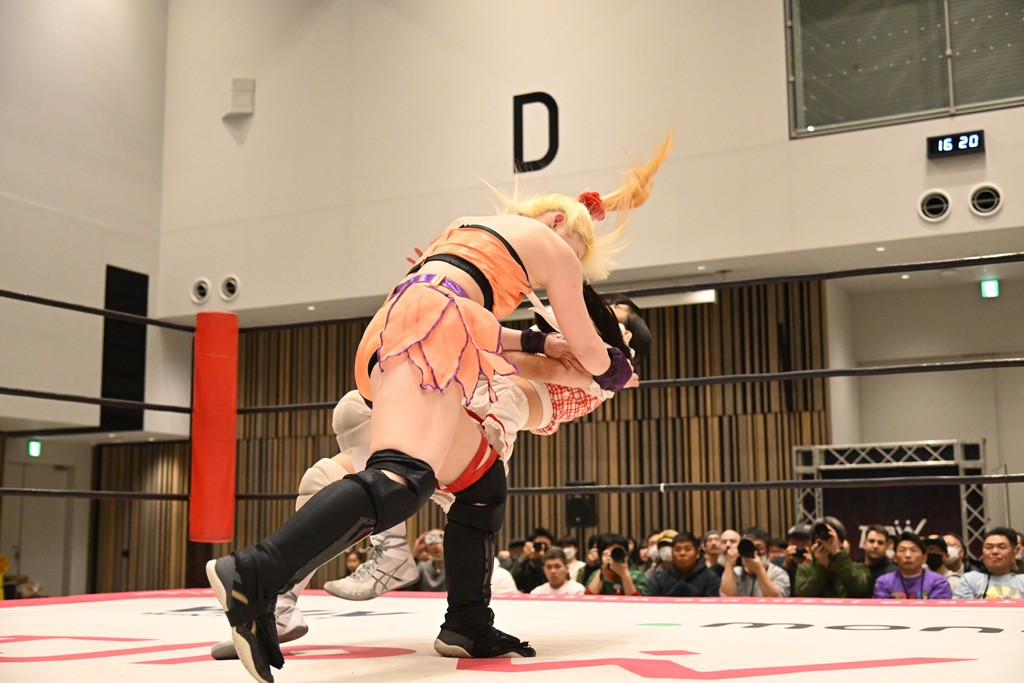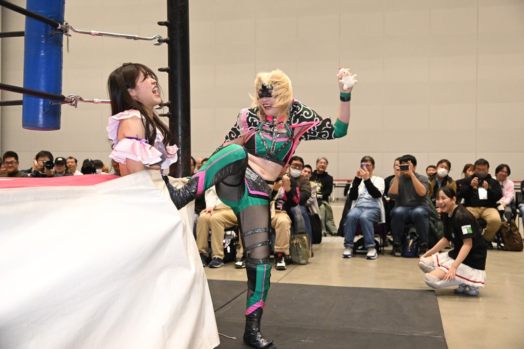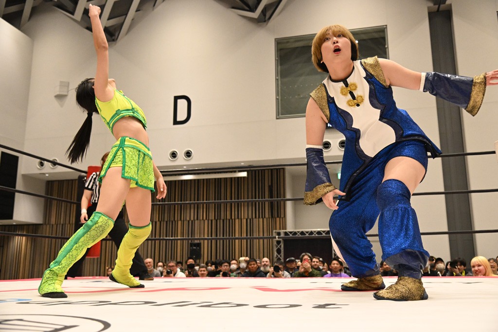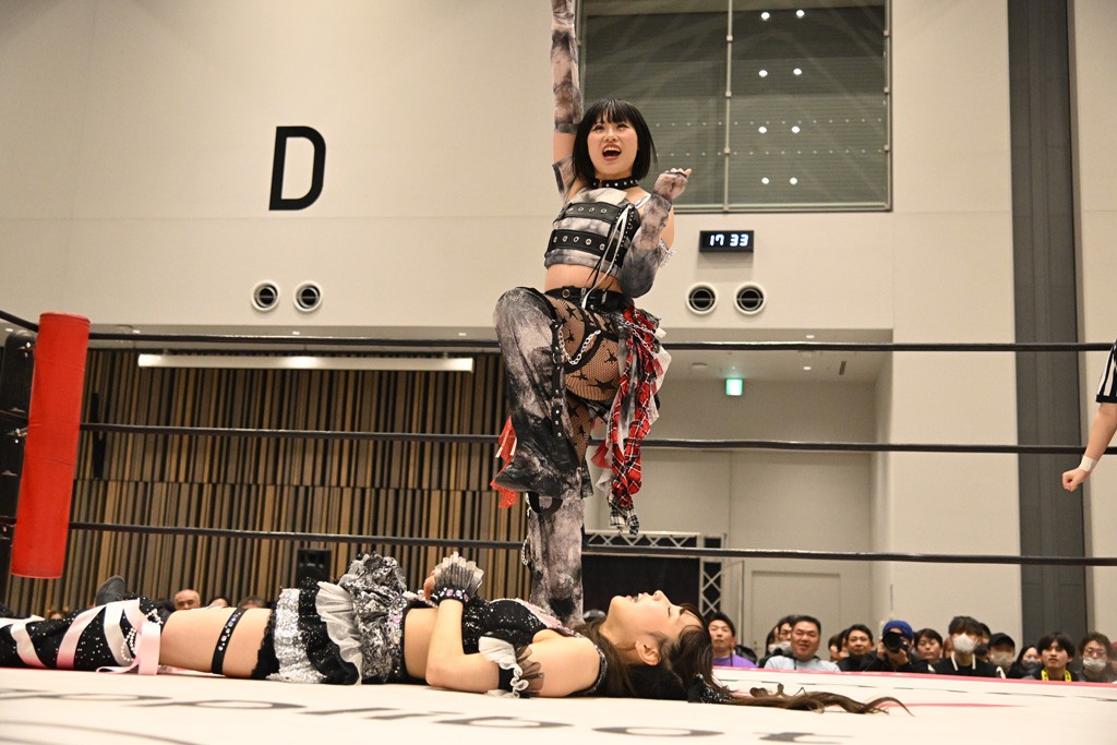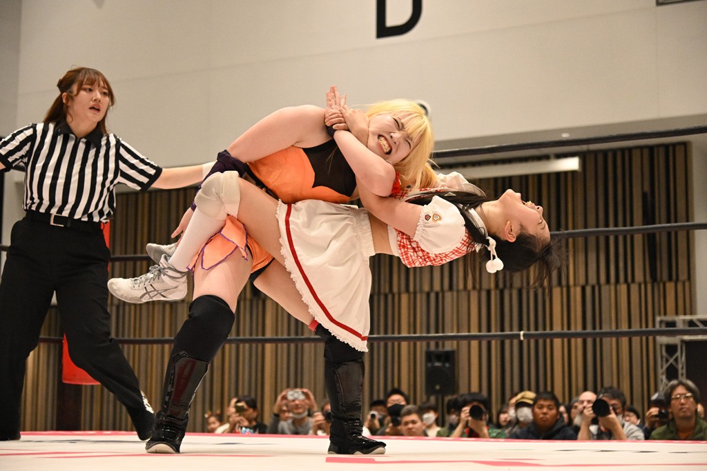 瑞希が両手を広げて握手を求めると、リカも応じる。だが、瑞希はトーキックで奇襲し、ここでゴング。速攻で丸め込んだが、カウント2。再び瑞希が握手を求めて握り返したリカにトーキック。突進をかわしたリカがロープ越しドラゴンスクリュー。さらに鉄柱を使って足を攻撃。ドロップキックは足を狙って決めていく。リングに戻ってよっしゃいくぞエルボーは自爆となるも、低空ドロップキック、ドラゴンスクリュー、足4の字固めとたたみかける。反転しながら瑞希がロープエスケープ。リカが足をロープにくくりつけてドロップキック。残り3分。バックブリーカーからのフォールをブリッジで脱した瑞希がフットスタンプ。ロープすり抜け式ドロップキック、コーナーダイブのフットスタンプはかわされたが、串刺しドロップキックで追い打ち。残り2分。セカンドロープに寝かせてフットスタンプからキューティースペシャル狙い。これをリカが切り返してドラゴンスリーパーへ。続くツイスト・オブ・フェイトからミサイルヒップ。かわされて瑞希のメテオラを浴びるも、カウンターのヒップアタックを決め、スライディングの一発も披露。追撃のツイスト・オブ・フェイトは瑞希が回転エビ固めで切り返すと、両者は丸め込みの応酬。カウント2。残り10秒でリカがドラゴンスリーパーに捕獲するも、タイムアップ。試合後は瑞希が握手を求め、リカが握り返すとトーキックを入れて引き上げていった。