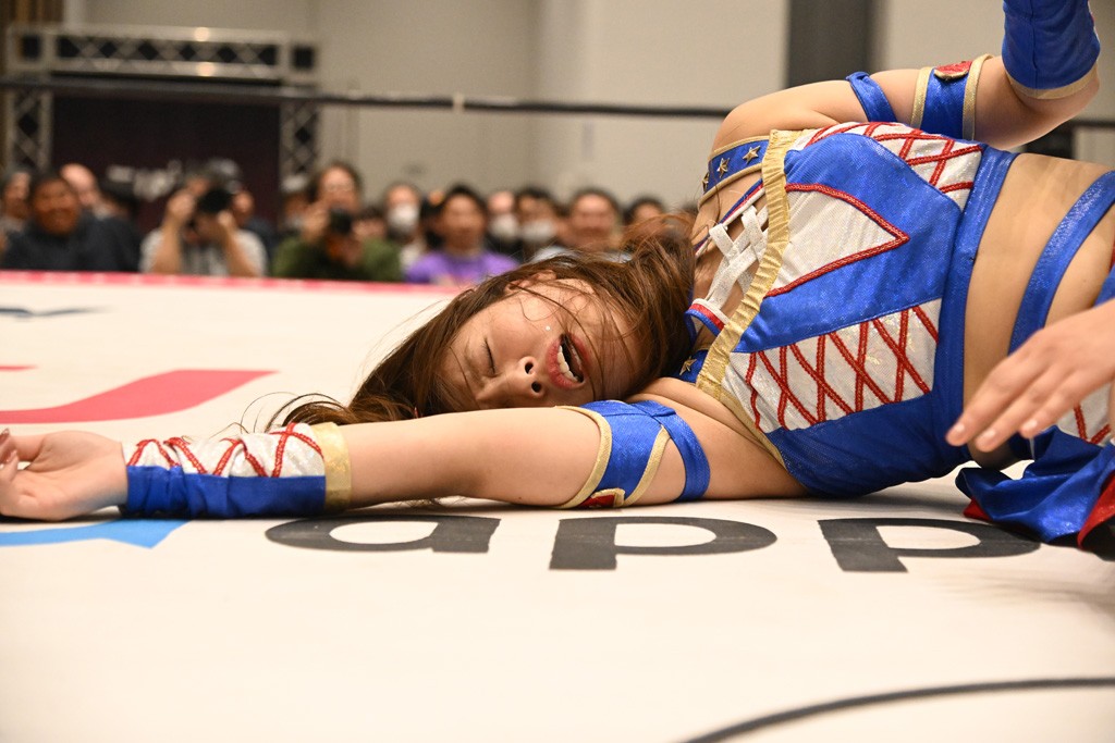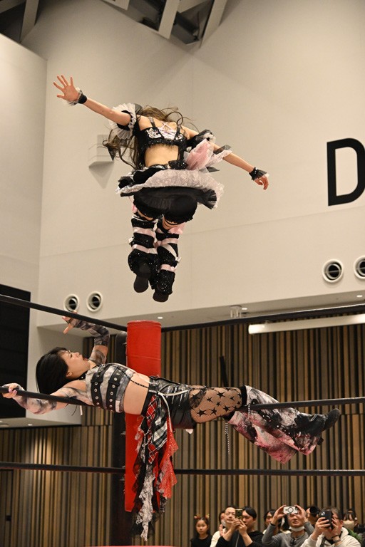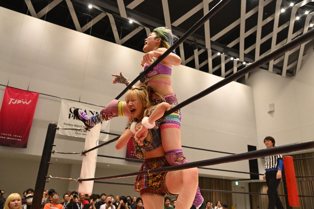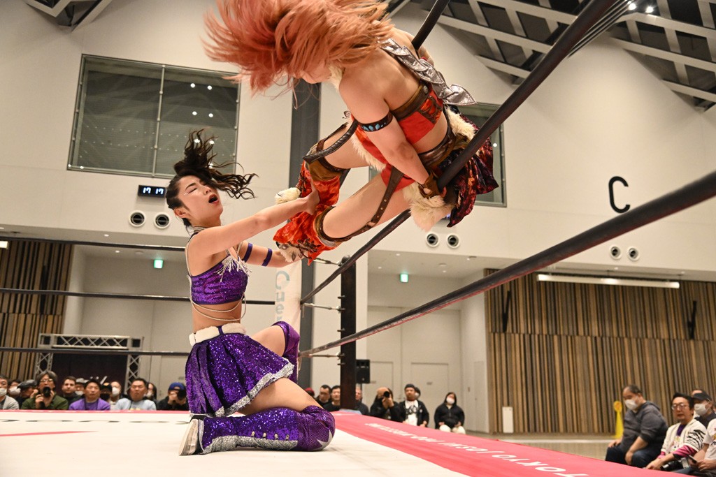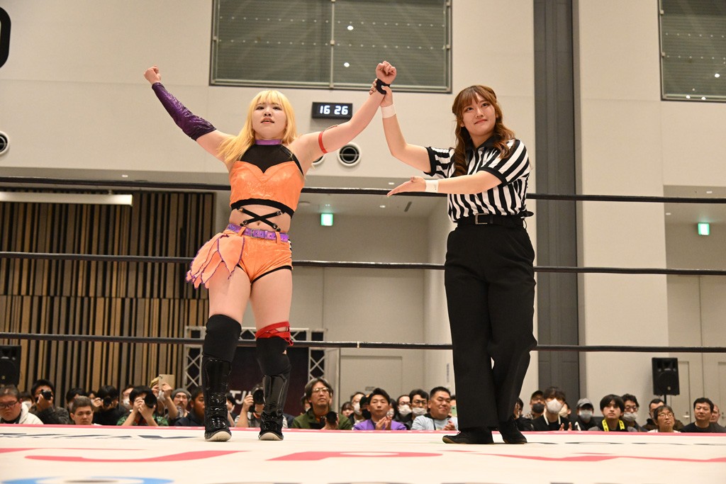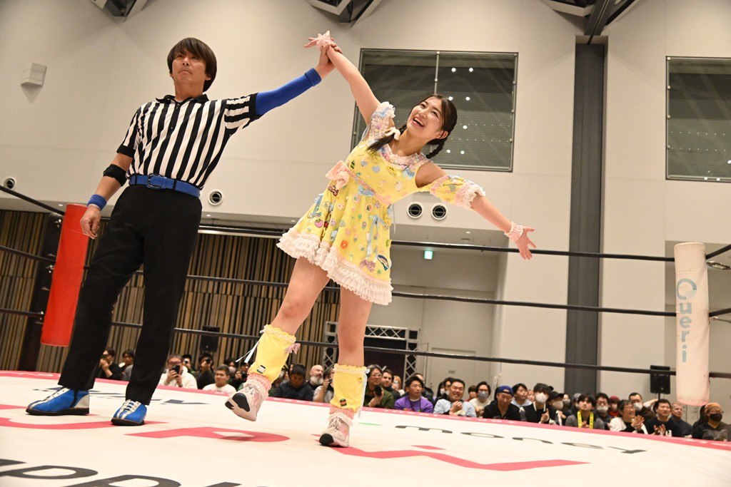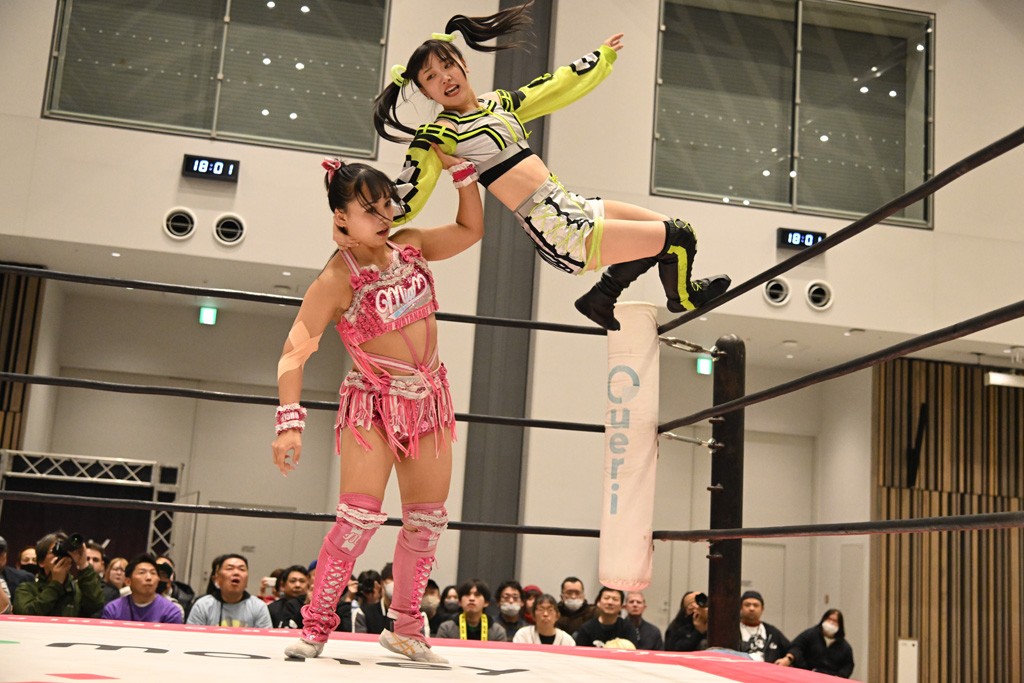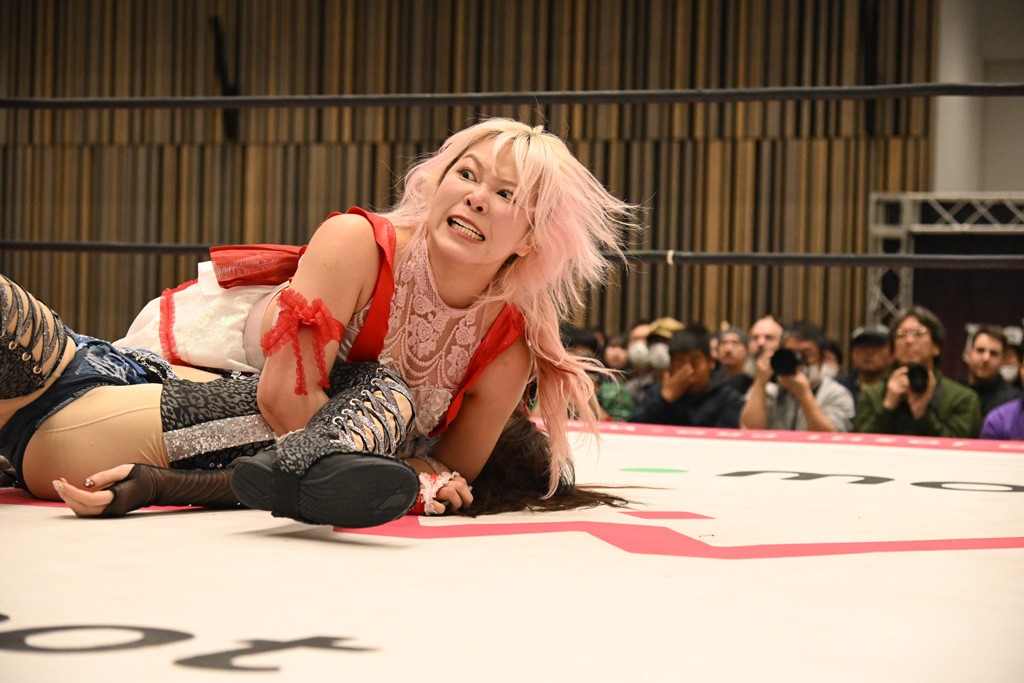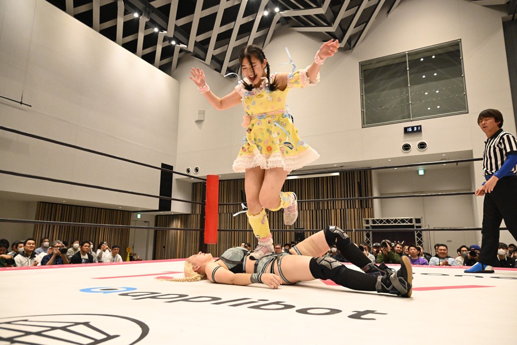 瑞希が両手を広げて握手を求めると、リカも応じる。だが、瑞希はトーキックで奇襲し、ここでゴング。速攻で丸め込んだが、カウント2。再び瑞希が握手を求めて握り返したリカにトーキック。突進をかわしたリカがロープ越しドラゴンスクリュー。さらに鉄柱を使って足を攻撃。ドロップキックは足を狙って決めていく。リングに戻ってよっしゃいくぞエルボーは自爆となるも、低空ドロップキック、ドラゴンスクリュー、足4の字固めとたたみかける。反転しながら瑞希がロープエスケープ。リカが足をロープにくくりつけてドロップキック。残り3分。バックブリーカーからのフォールをブリッジで脱した瑞希がフットスタンプ。ロープすり抜け式ドロップキック、コーナーダイブのフットスタンプはかわされたが、串刺しドロップキックで追い打ち。残り2分。セカンドロープに寝かせてフットスタンプからキューティースペシャル狙い。これをリカが切り返してドラゴンスリーパーへ。続くツイスト・オブ・フェイトからミサイルヒップ。かわされて瑞希のメテオラを浴びるも、カウンターのヒップアタックを決め、スライディングの一発も披露。追撃のツイスト・オブ・フェイトは瑞希が回転エビ固めで切り返すと、両者は丸め込みの応酬。カウント2。残り10秒でリカがドラゴンスリーパーに捕獲するも、タイムアップ。試合後は瑞希が握手を求め、リカが握り返すとトーキックを入れて引き上げていった。