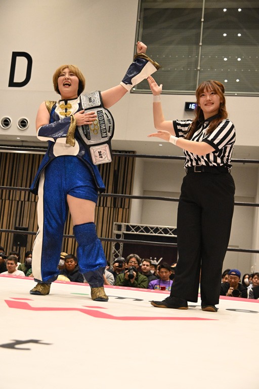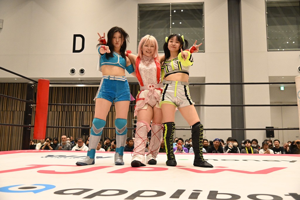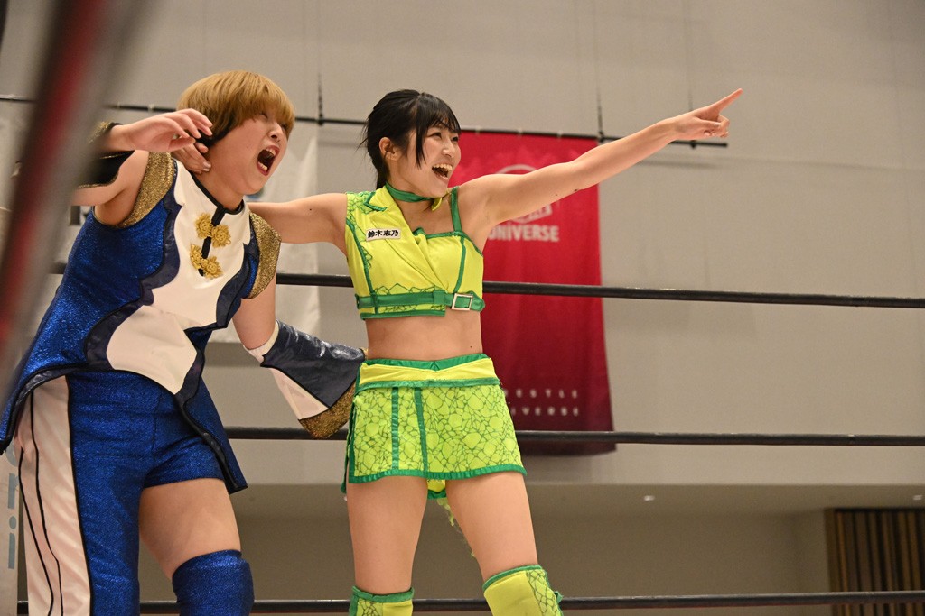 鈴芽 私もメラメラとした熱い風みたいなものを感じてメッチャ気合い入ったし、私自身もすごく効率のいい闘い方をする部分があったんですけど、私らしさを考えたときにそうじゃないなって思ったんですよ。だから私は自分の持てるものを全部使って、自分らしいとか自分らしくないとか考えずに未詩さんにブチ当たろうと思うし、今日ので未詩さんは全方向に警戒しないといけなくなったと思うので。どこからでも刺せる、未詩さんにとって一番危険な存在になろうと思います。私はイッテンヨンの先でこの3人でベルトを巻きたいです。