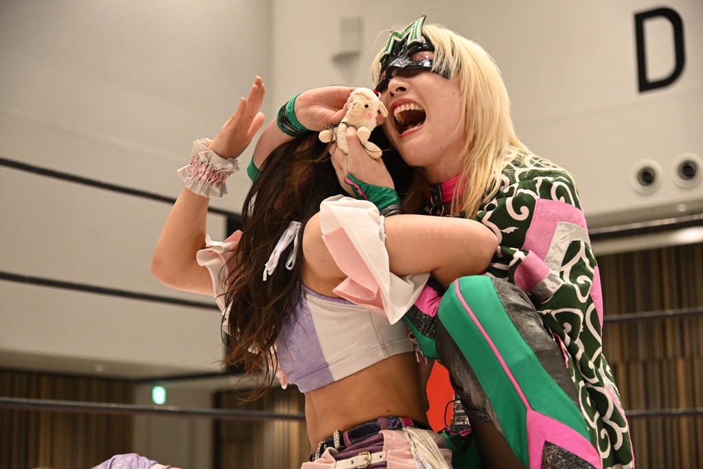 開始前にミサヲがマイク。「いままでズルしてた。2人で戦っていた」と難癖をつけて小夏が腰につけている羊のぬいぐるみを強奪。腹話術を使って喋り出しながら奇襲する。羊のぬいぐるみを持ちながらリングサイドへ逃げ出すと、追いかけた小夏と場外戦に。鉄柱攻撃の自爆を誘ったミサヲはリングの幕でくるんでしまう。なんとかリングに戻った小夏はミサヲにコーナー反転式回転エビ固め。突進を羊のぬいぐるみでブロックしたミサヲはチキン・ウイングフェースロックで捕獲。これをカバーして脱した小夏がドロップキック。スリーパーで捕獲して残り3分。コーナーにぶつけて回避したミサヲが羊のぬいぐるみ付きスプレー攻撃を狙うも、小夏が反撃されて自爆。小夏がコードブレイカーからスリーパーを仕掛けていくと、ミサヲの手からぬいぐるみが落ちていく。だが、追撃の突進をかわしたミサヲがエプロンダッシュのニーストライク。さらにチキンウイングで捕えてギブアップを奪った。