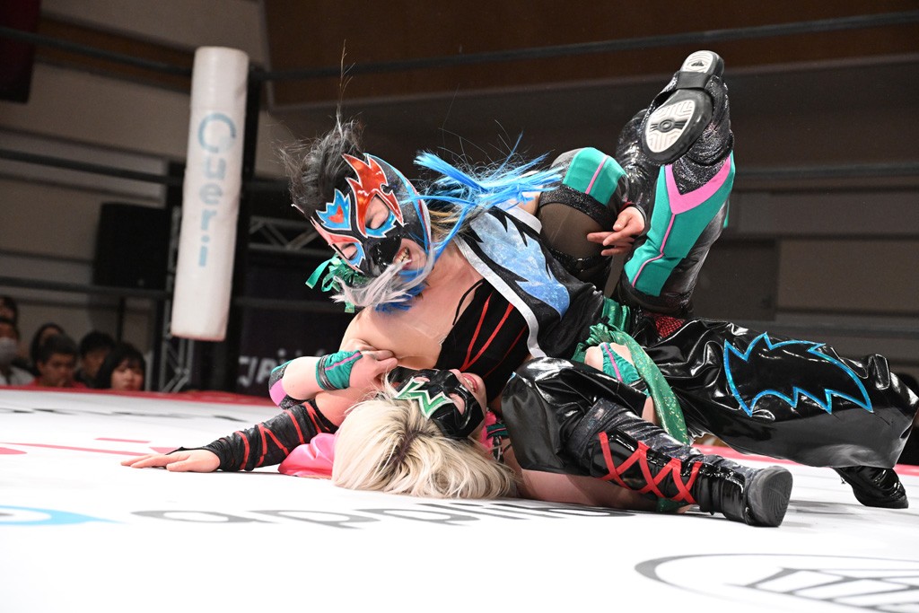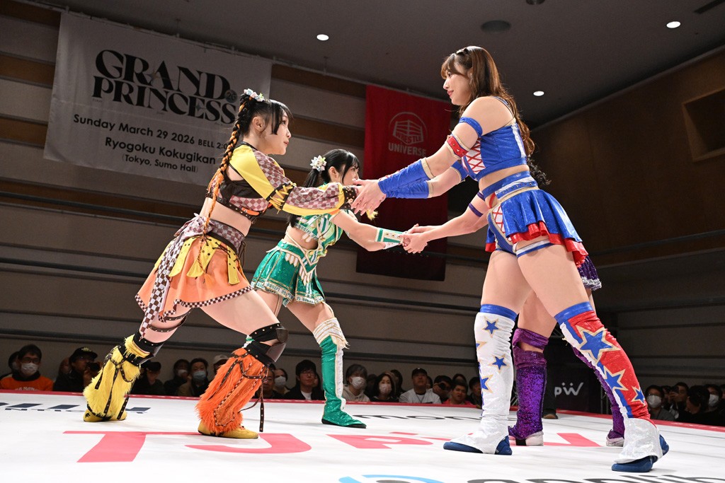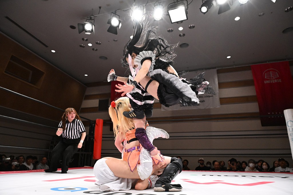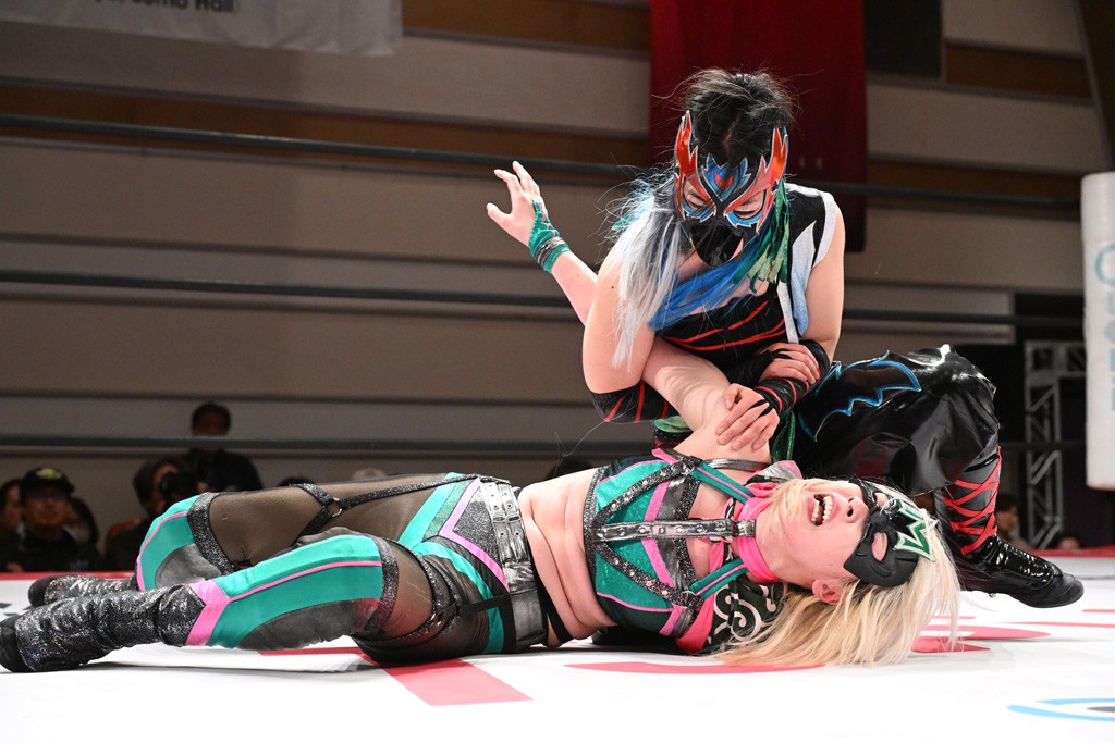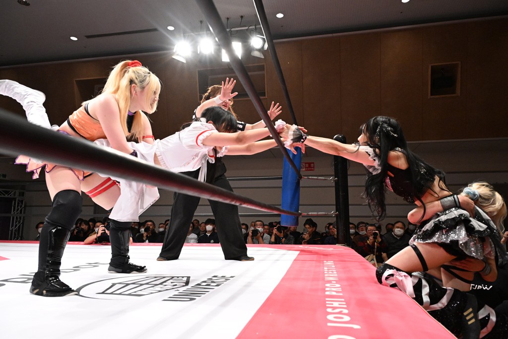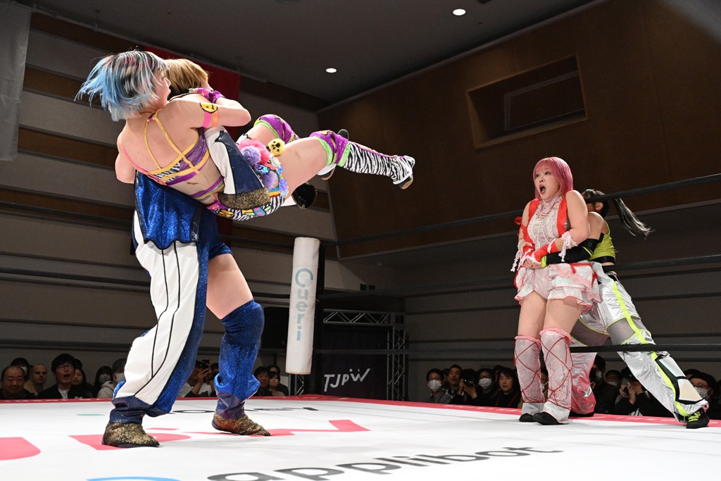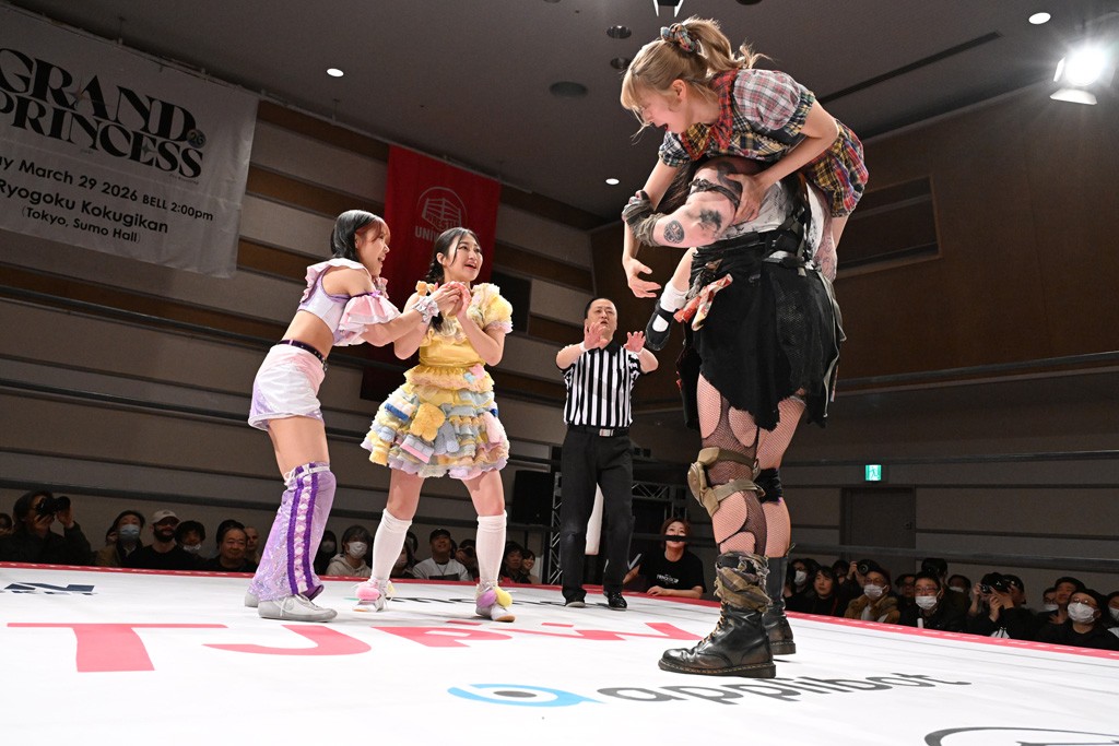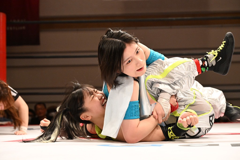 トーナメント1回戦。「お願いします!」と瑞希組が握手を求めて奇襲。瑞希がクロスボディーから汐珠がドロップキックの連係。2人でカバーすると、サマーのカットが誤爆。さらに瑞希が汐珠をスルーして2人まとめて串刺し攻撃。3発目はサマーがショルダータックルで迎撃すると、汐珠がローンバトル。キラのショルダースルーはカウント2。ドロップキックで反撃して瑞希にスイッチすると、セカンドロープすり抜け式ドロップキック。さらにコーナーダイブのクロスボディーで追撃もサマーが突進した瑞希をボディースラムで投げ捨てる。5分経過。かわった千花が稲荷鳥居を瑞希がクロスフェースで切り返す。カットに来たキラを場外に追放した瑞希に千花がショルダータックル。カバーはブリッジで抜けた瑞希がフットスタンプで汐珠にスイッチ。コアラクラッチは不発となると、コーナーへ。ここで割って入ったキラが捕獲してアバランシュホールド。千花とキラがエルボードロップとギロチンドロップの連係。千花がバックに回るとカットに入ろうとする瑞希をキラが排除。回転エビ固め合戦の中、瑞希がフットスタンプで千花をカットし、キラにミサイルキックを放って場外追放。最後は汐珠がコーナー反転式ミサイルキックからコアラクラッチでギブアップを奪った。2回戦は愛野ユキ&風城ハル組と対戦する。