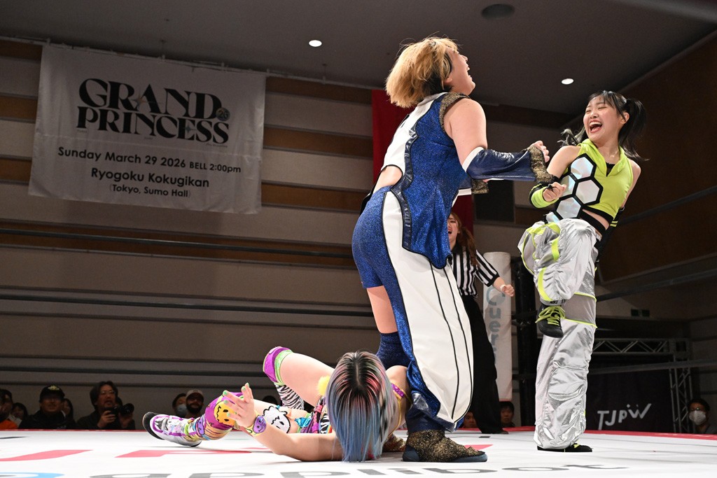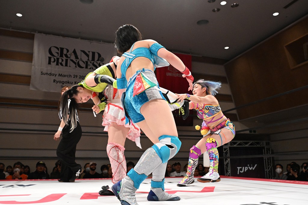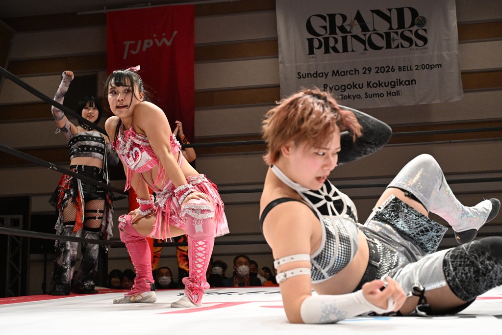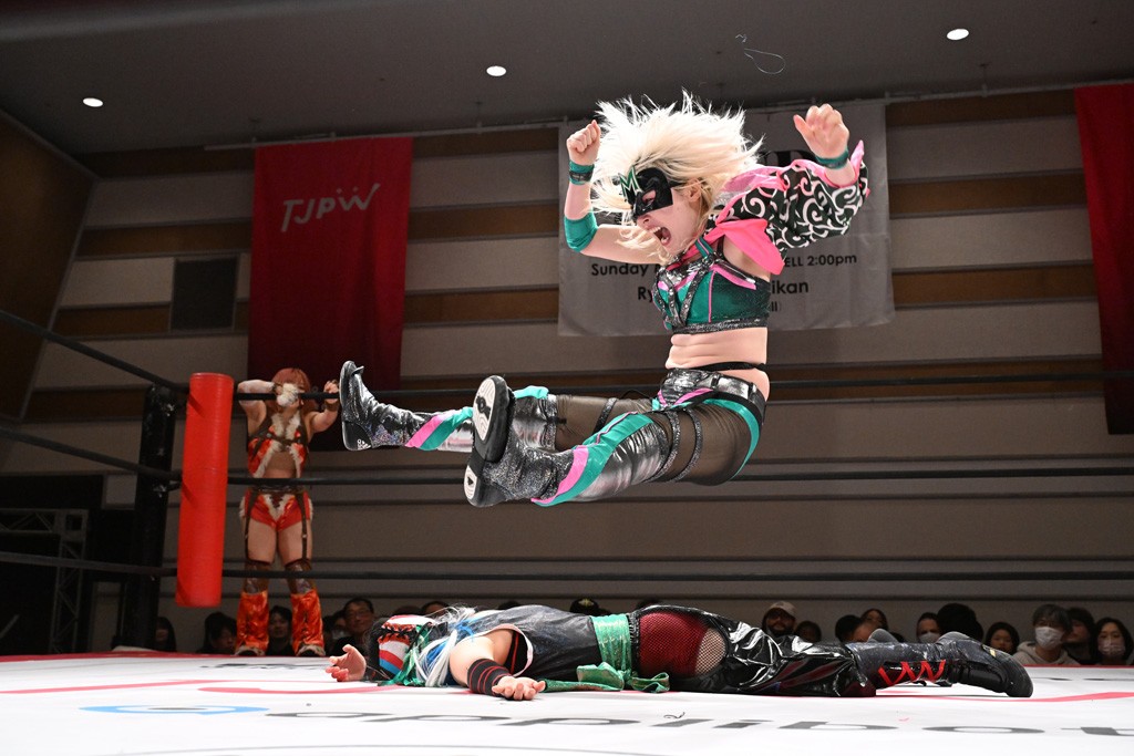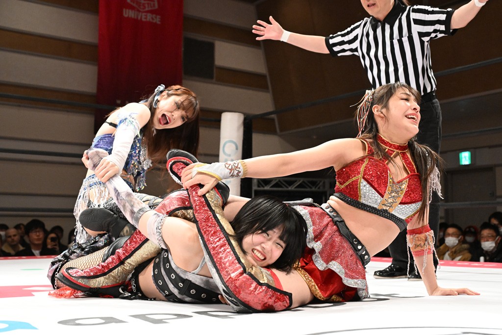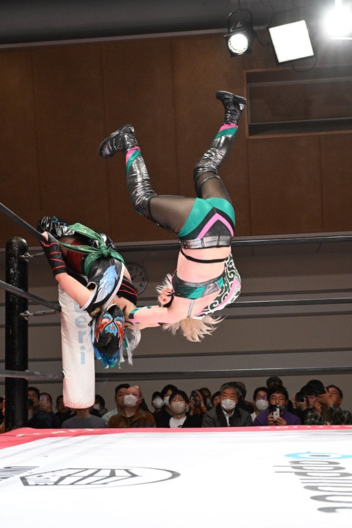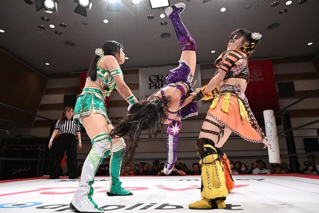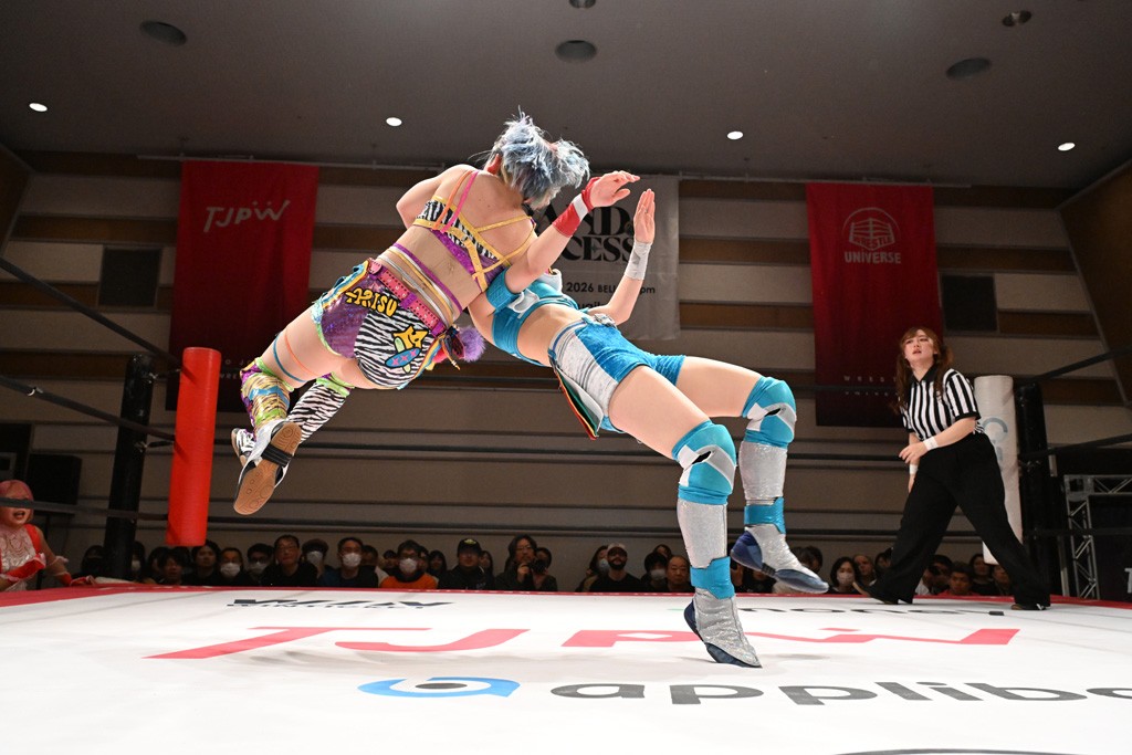 トーナメント1回戦。「お願いします!」と瑞希組が握手を求めて奇襲。瑞希がクロスボディーから汐珠がドロップキックの連係。2人でカバーすると、サマーのカットが誤爆。さらに瑞希が汐珠をスルーして2人まとめて串刺し攻撃。3発目はサマーがショルダータックルで迎撃すると、汐珠がローンバトル。キラのショルダースルーはカウント2。ドロップキックで反撃して瑞希にスイッチすると、セカンドロープすり抜け式ドロップキック。さらにコーナーダイブのクロスボディーで追撃もサマーが突進した瑞希をボディースラムで投げ捨てる。5分経過。かわった千花が稲荷鳥居を瑞希がクロスフェースで切り返す。カットに来たキラを場外に追放した瑞希に千花がショルダータックル。カバーはブリッジで抜けた瑞希がフットスタンプで汐珠にスイッチ。コアラクラッチは不発となると、コーナーへ。ここで割って入ったキラが捕獲してアバランシュホールド。千花とキラがエルボードロップとギロチンドロップの連係。千花がバックに回るとカットに入ろうとする瑞希をキラが排除。回転エビ固め合戦の中、瑞希がフットスタンプで千花をカットし、キラにミサイルキックを放って場外追放。最後は汐珠がコーナー反転式ミサイルキックからコアラクラッチでギブアップを奪った。2回戦は愛野ユキ&風城ハル組と対戦する。