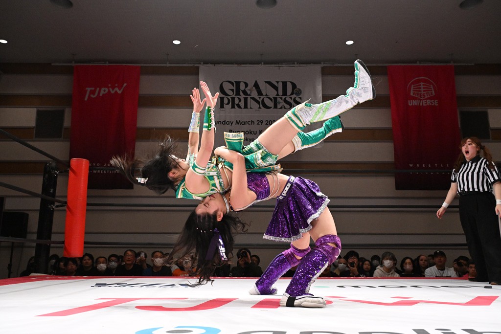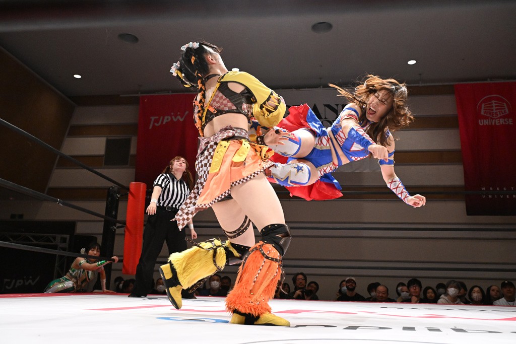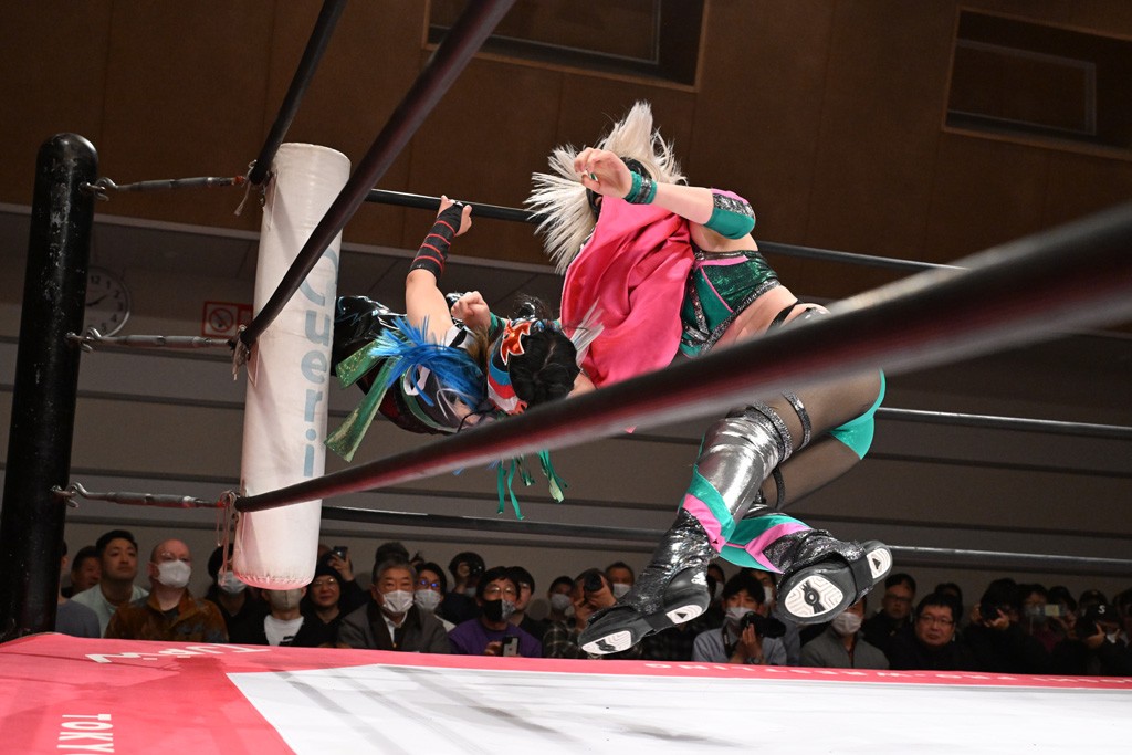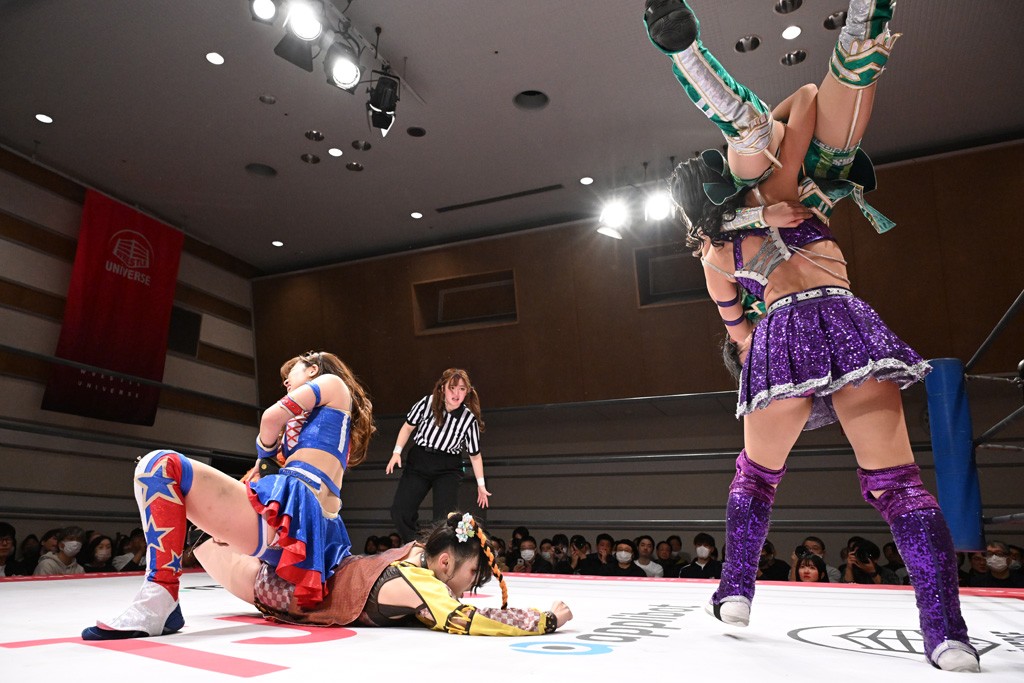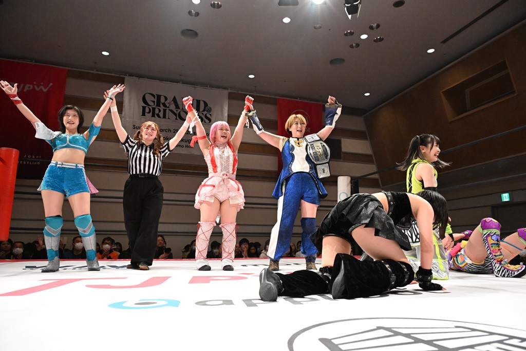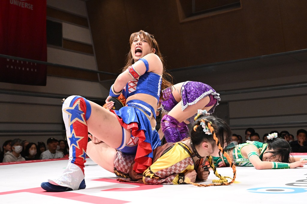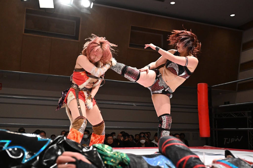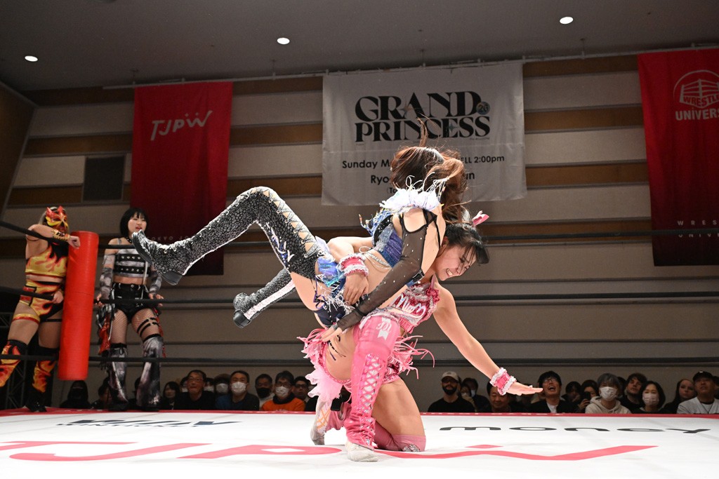 トーナメント1回戦。「お願いします!」と瑞希組が握手を求めて奇襲。瑞希がクロスボディーから汐珠がドロップキックの連係。2人でカバーすると、サマーのカットが誤爆。さらに瑞希が汐珠をスルーして2人まとめて串刺し攻撃。3発目はサマーがショルダータックルで迎撃すると、汐珠がローンバトル。キラのショルダースルーはカウント2。ドロップキックで反撃して瑞希にスイッチすると、セカンドロープすり抜け式ドロップキック。さらにコーナーダイブのクロスボディーで追撃もサマーが突進した瑞希をボディースラムで投げ捨てる。5分経過。かわった千花が稲荷鳥居を瑞希がクロスフェースで切り返す。カットに来たキラを場外に追放した瑞希に千花がショルダータックル。カバーはブリッジで抜けた瑞希がフットスタンプで汐珠にスイッチ。コアラクラッチは不発となると、コーナーへ。ここで割って入ったキラが捕獲してアバランシュホールド。千花とキラがエルボードロップとギロチンドロップの連係。千花がバックに回るとカットに入ろうとする瑞希をキラが排除。回転エビ固め合戦の中、瑞希がフットスタンプで千花をカットし、キラにミサイルキックを放って場外追放。最後は汐珠がコーナー反転式ミサイルキックからコアラクラッチでギブアップを奪った。2回戦は愛野ユキ&風城ハル組と対戦する。