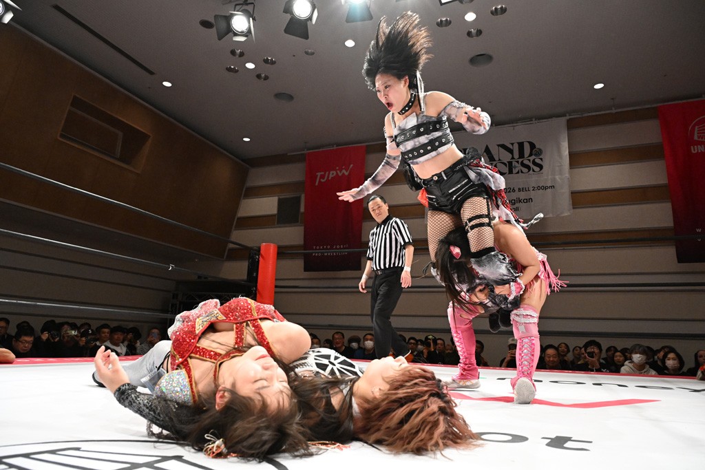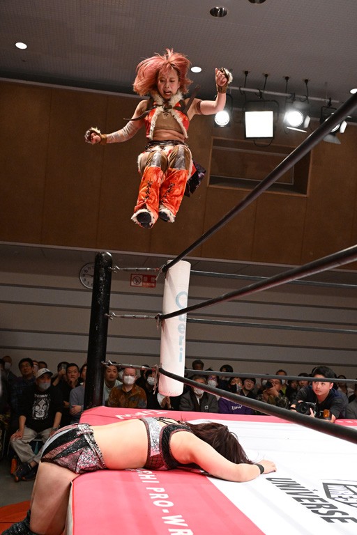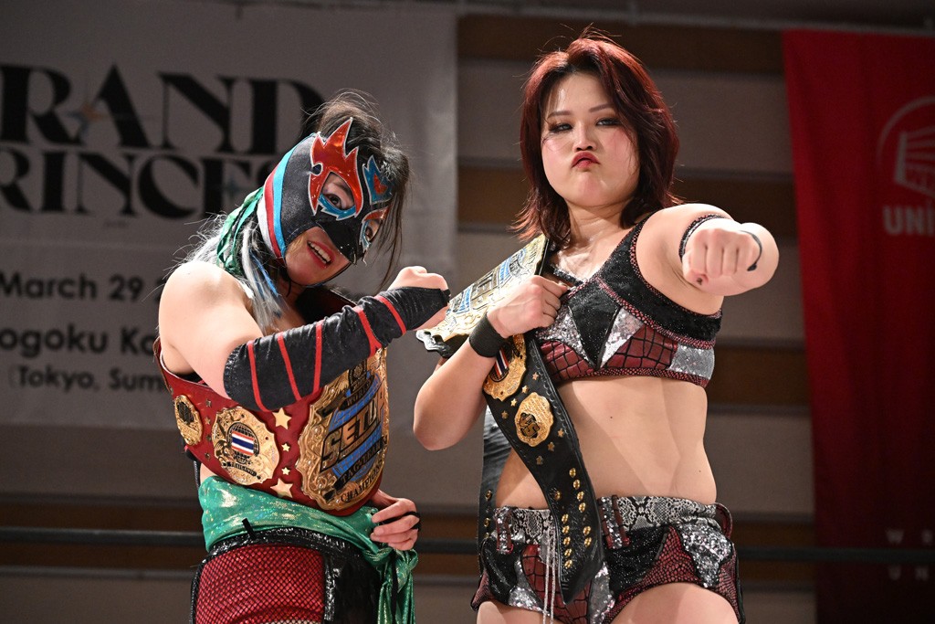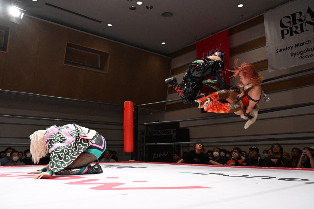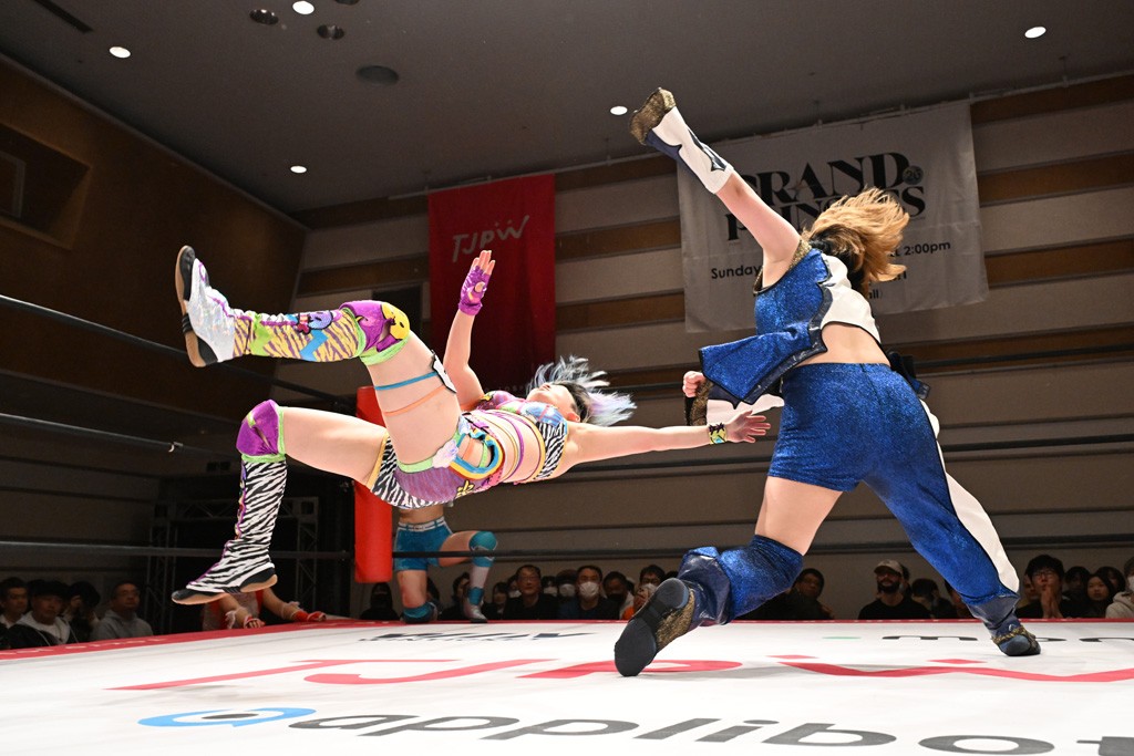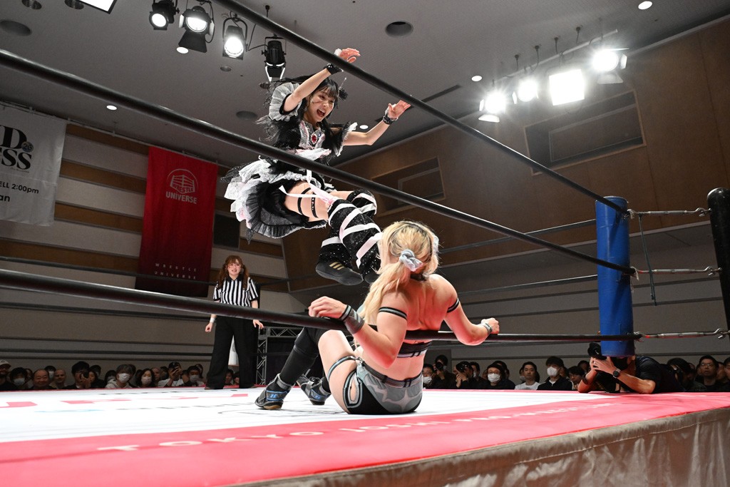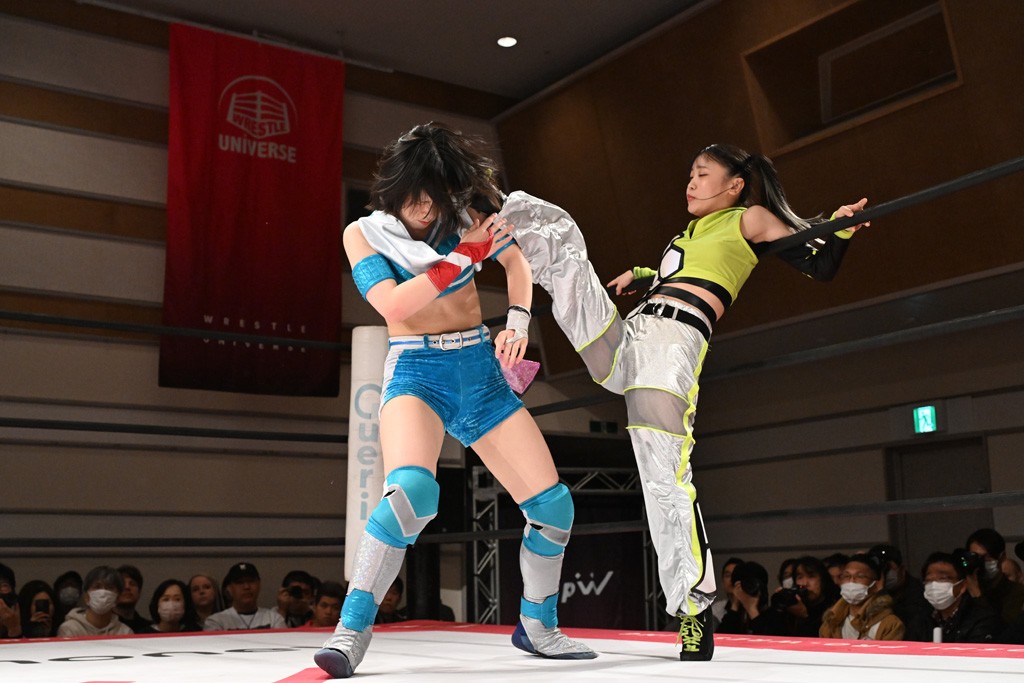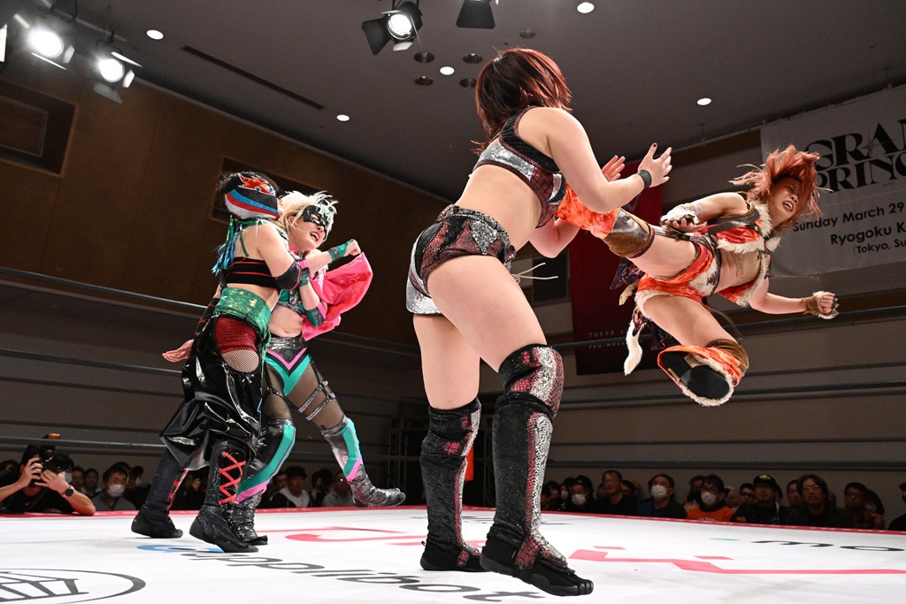 トーナメント1回戦。「お願いします!」と瑞希組が握手を求めて奇襲。瑞希がクロスボディーから汐珠がドロップキックの連係。2人でカバーすると、サマーのカットが誤爆。さらに瑞希が汐珠をスルーして2人まとめて串刺し攻撃。3発目はサマーがショルダータックルで迎撃すると、汐珠がローンバトル。キラのショルダースルーはカウント2。ドロップキックで反撃して瑞希にスイッチすると、セカンドロープすり抜け式ドロップキック。さらにコーナーダイブのクロスボディーで追撃もサマーが突進した瑞希をボディースラムで投げ捨てる。5分経過。かわった千花が稲荷鳥居を瑞希がクロスフェースで切り返す。カットに来たキラを場外に追放した瑞希に千花がショルダータックル。カバーはブリッジで抜けた瑞希がフットスタンプで汐珠にスイッチ。コアラクラッチは不発となると、コーナーへ。ここで割って入ったキラが捕獲してアバランシュホールド。千花とキラがエルボードロップとギロチンドロップの連係。千花がバックに回るとカットに入ろうとする瑞希をキラが排除。回転エビ固め合戦の中、瑞希がフットスタンプで千花をカットし、キラにミサイルキックを放って場外追放。最後は汐珠がコーナー反転式ミサイルキックからコアラクラッチでギブアップを奪った。2回戦は愛野ユキ&風城ハル組と対戦する。
