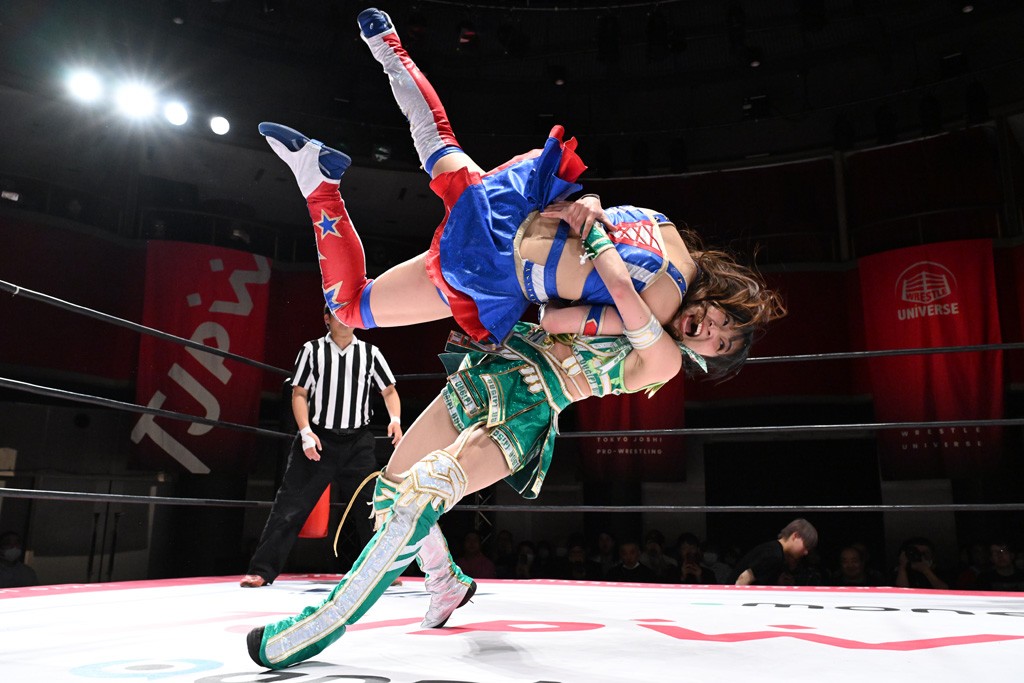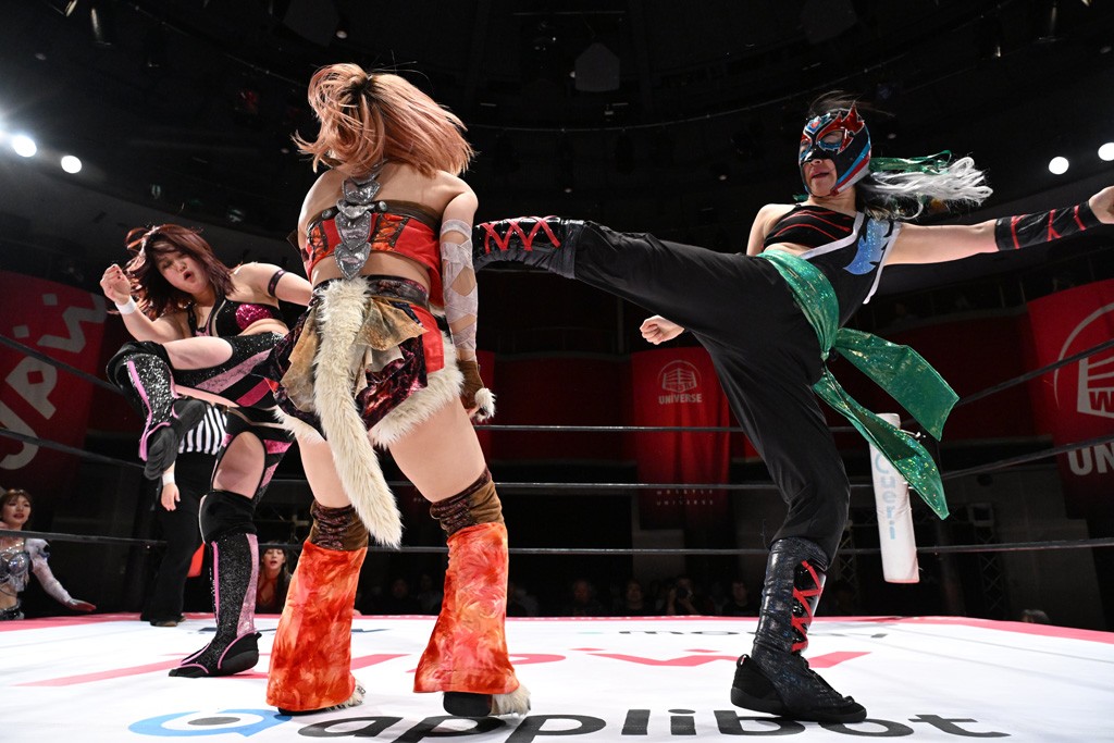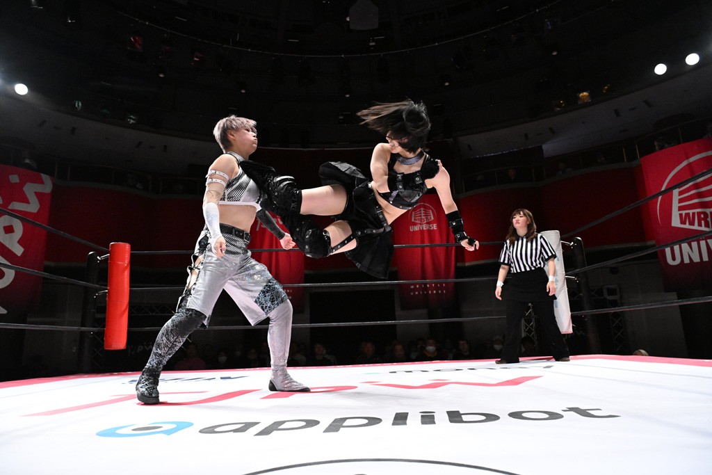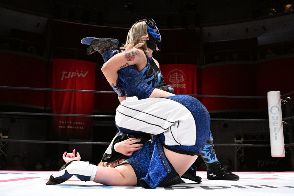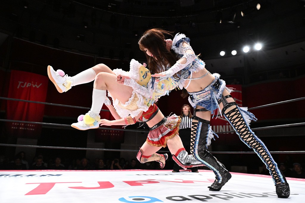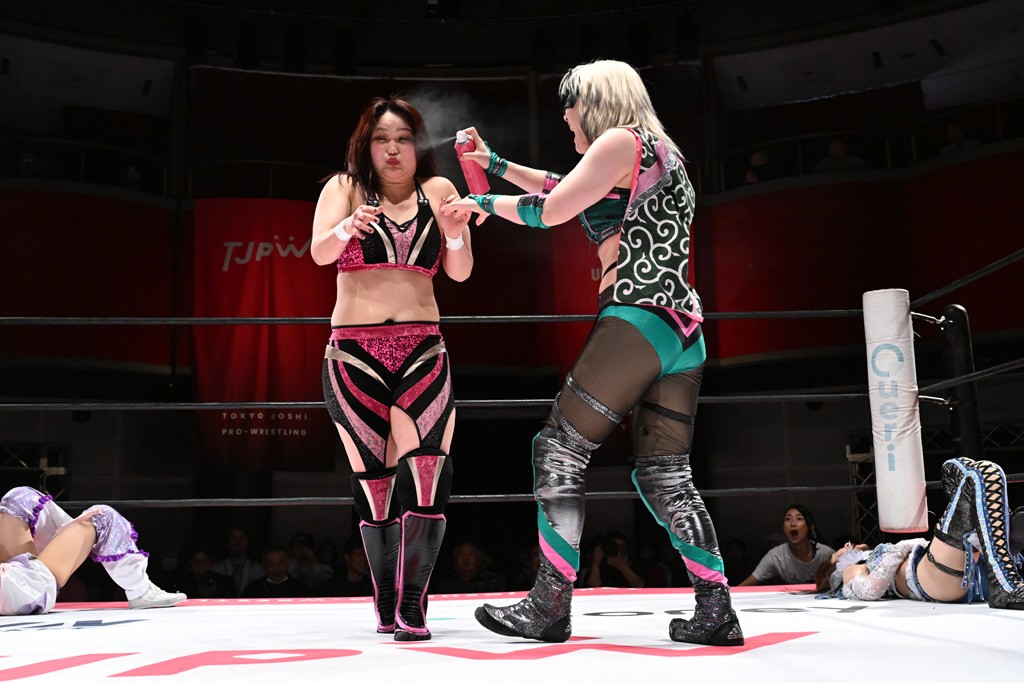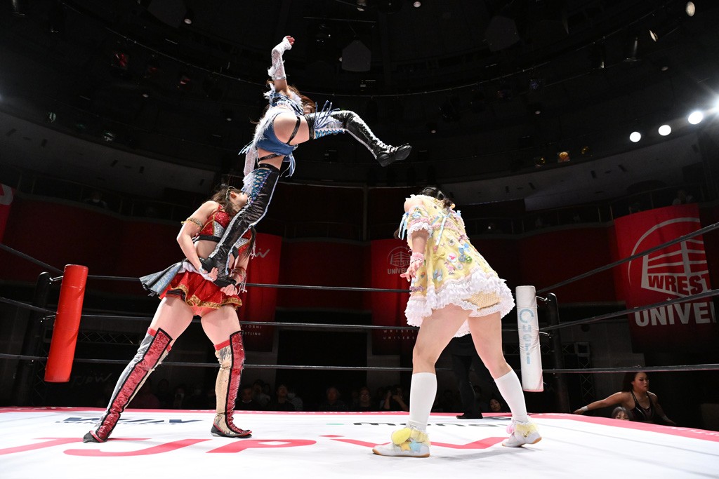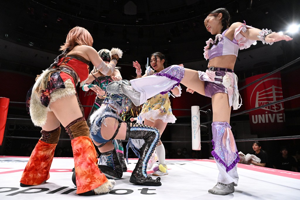 Ober Eats&K!SS//が入場する前にミサヲがマイクで作戦を「鳥喰はらくのアイマスクで視界を奪い、山下をらくの布団でぐるぐる巻に。くいしんぼうの上原は小夏のパンで釣り、上福を1人にしてミサヲのスーパー風呂敷で視界を奪う」と発表。山下が入場すると中島組が襲って鳥喰を視界不良に、山下が布団に包まれて戦闘不能に。続けてトロフィーとともOber Eatsが入場すると、上原がパンに釣られて場外に追放すると、リング内に1人になった上福にミサヲが風呂敷で視界を奪う。さらに山下をリング内に上げてると、風呂敷を取った上福が山下にストンピング。「コナツ」コールの中、山下が露わになると、同士討ちに気付いた上福をミサヲ組が奇襲しておやすみエクスプレス&おやすみなさいフォール。カウント2。サミングの乱れ打ちでピンチを脱した上福は小夏を捕まえて上原を呼び込むも、返事がない。慌てて上原がリングインして大謝り。Ober Eatsが合体の複合関節を決めながらポーズ。さらに上原がドロップキックを放って山下にスイッチ。サッカーボールキックはカウント2。鳥喰にかわると串刺しエルボー。5分経過。カウンターのドロップキックを決めた小夏から中島にスイッチ。鳥喰にハリケーンラナからスワンダイブのハリケーンラナ。カウント2。ノーザンライトSHは決まらず、鳥喰のオーバーヘッドキックを食らうも中島が619の体勢。これを山下がカットしてK!SS//が連係でダブルのミドルキック。ロープワークでスイッチしたミサヲが山下に背後からニーストライク。クロスボディーからチキンウィング・フェースロック。立ち上がって脱した山下がハイキック。ミサヲはニーストライクで対抗するが、山下がリターン・クラッシュで応戦。両軍スイッチして上原がらくにスペース・ローリングエルボー。ドロップキックはカウント2。抵抗したらくに上福がビッグブーツから上原からスナップ・スープレックス。さらにOber Eatsがビッグブーツの合体技。カバーを中島がカットして、らくがぽっぽーチョップ!!連発でピンチを脱する。10分経過、小夏との連係を上原は側転で回避。Ober Eatsの連係はらくがカットインしてフェースクラッシャー。さらにこなつくらっしゅとスーパービュー踊り子の連係が決まる。カウント2となって小夏が回転エビ固め。カットに入った山下のキックが上福に誤爆してしまうと中島が上原にトペ、ミサヲが山下にニーストライクで分断。リング内では小夏がひつじ座コメット(ステップ式スワンダイブ・ミサイルキック)でダイブするも、避けた上福が串刺しドロップキック。さらに湘南台卍で捕獲すると、上原もバナナ・ピローでらくを捕らえてアシスト。たまらず小夏がギブアップ。
