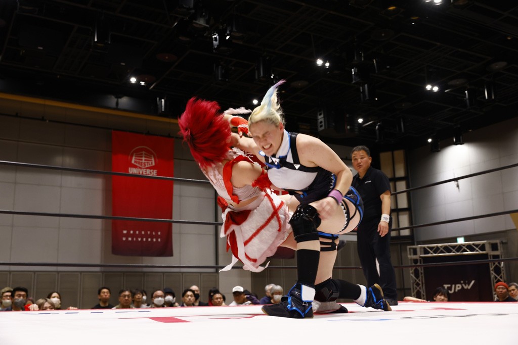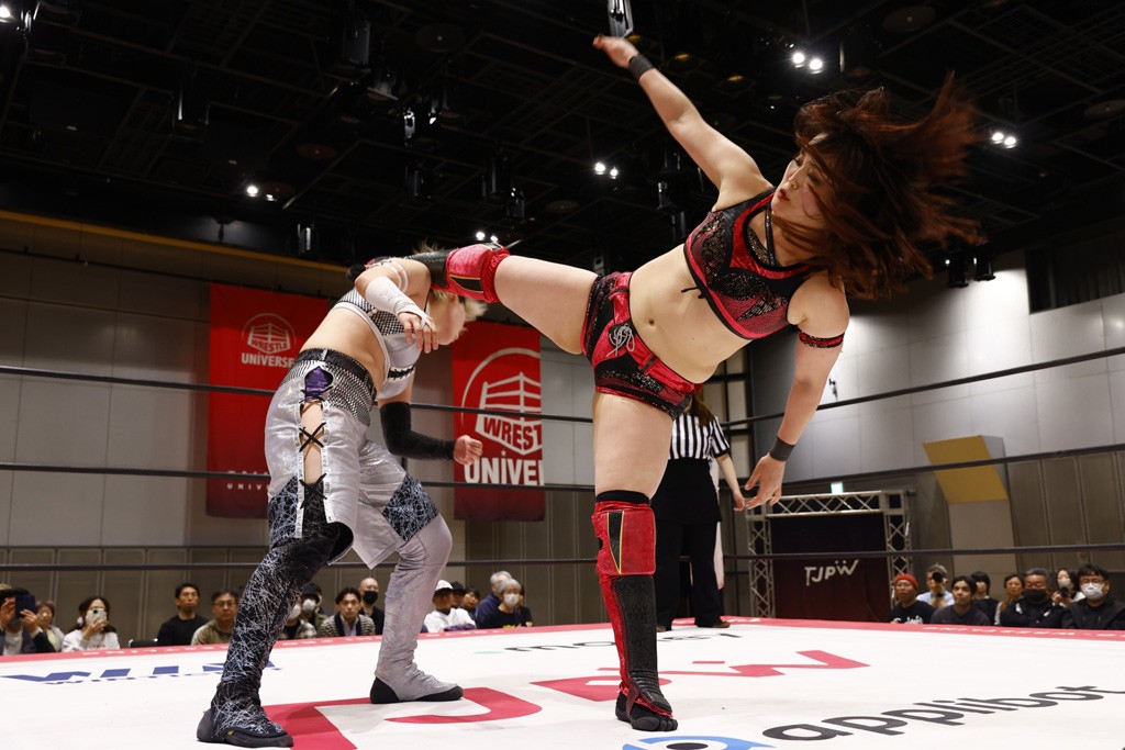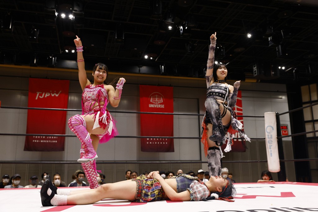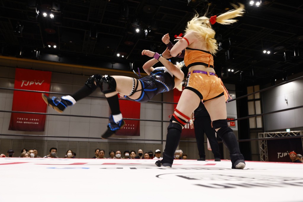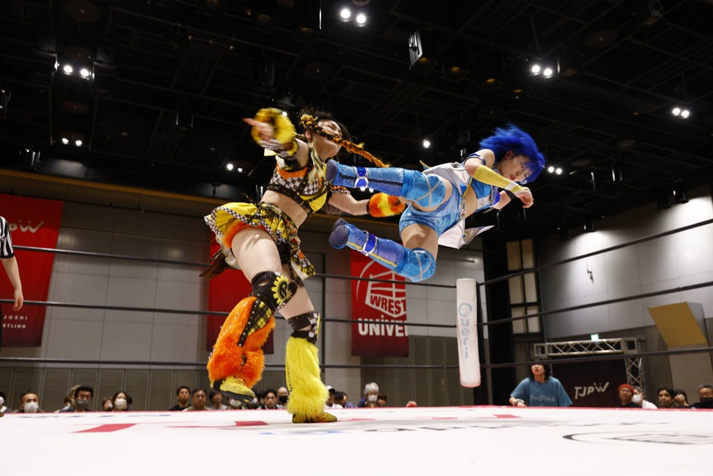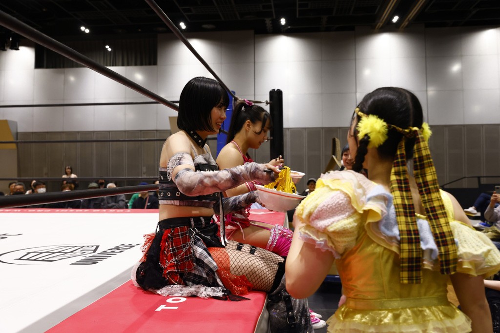 芦田 福岡ありがとうございました。無事私たち人が勝てていい連戦の締めになりましたね。そしてこれが挑戦権を懸けた5WAYにつながるわけですが、私の意気込み言ってもいいですか? 私はもともと東女に入ってから、このIPのベルトを一番最初に挑戦するベルトにしたかったし、一番最初に腰に巻くベルトにしたかったんです。それでこの前アメリカ遠征も経験させてもらって、やっぱり私はあのIPのベルトを巻いて、海外で試合をしまくってしまくってしまくって、東京女子をもっと世界的に有名にしたいという気持ちが強くなったので、今回、IPのベルトに挑戦するのは私です。