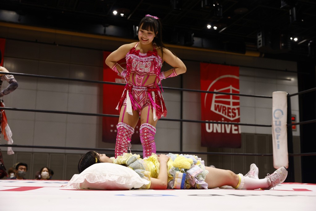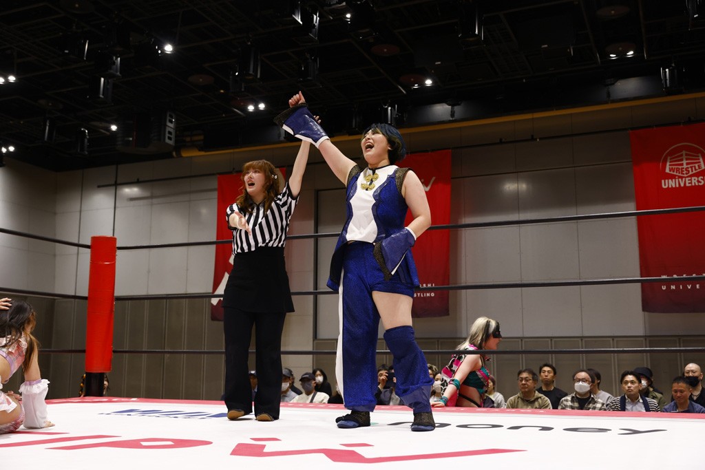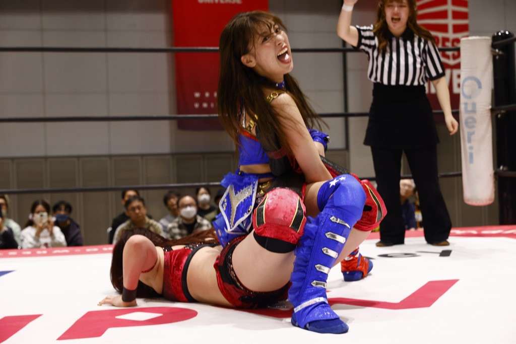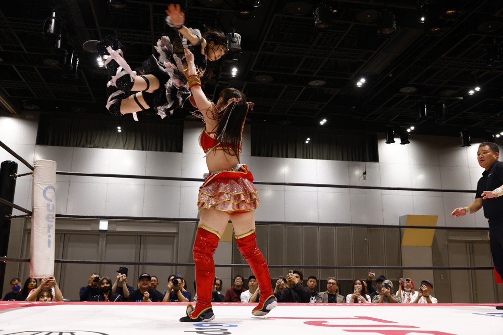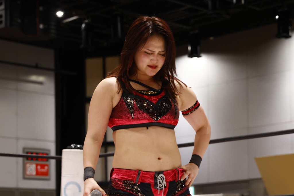 鈴芽 今日、本当に5人それぞれの熱い気持ちとかメラメラしたものを感じたので、私は絶対にラスベガスでこのベルトを防衛して、その中の一番ベルトへの想いが強い子とタイトルマッチをしたいと思います。そして絶対に私が守ります。私が一番似合うし、私が一番ミラクルになるから。
