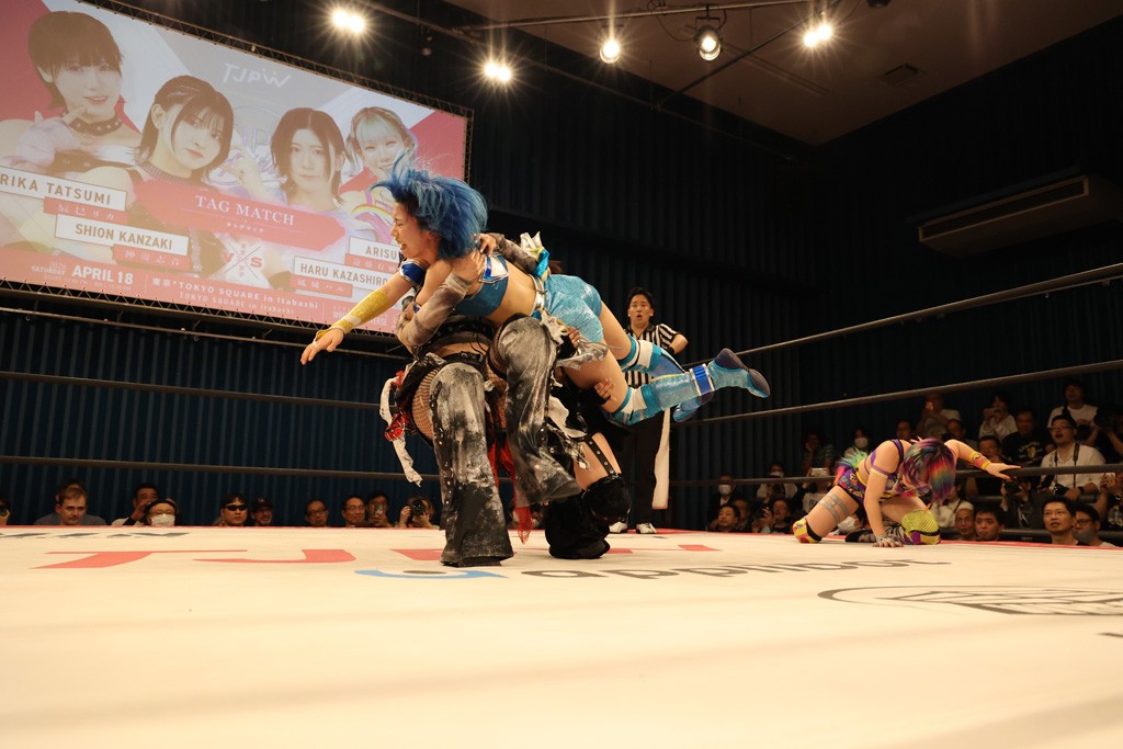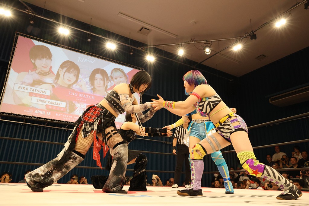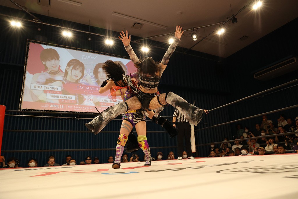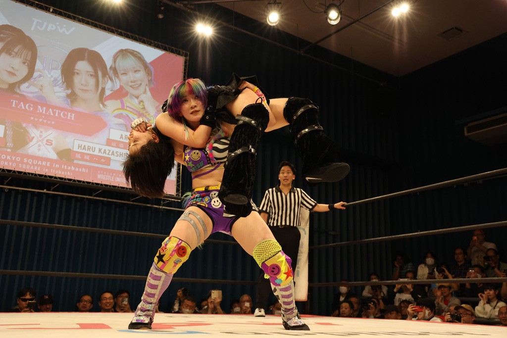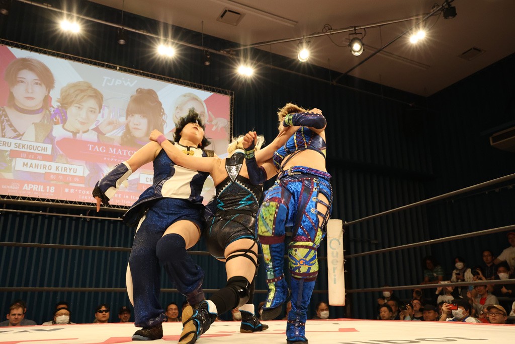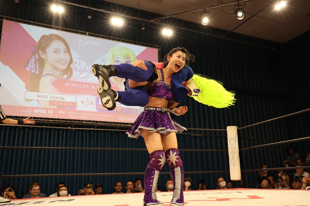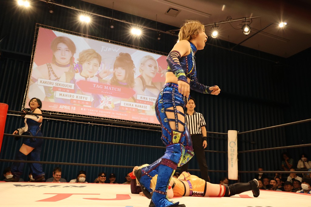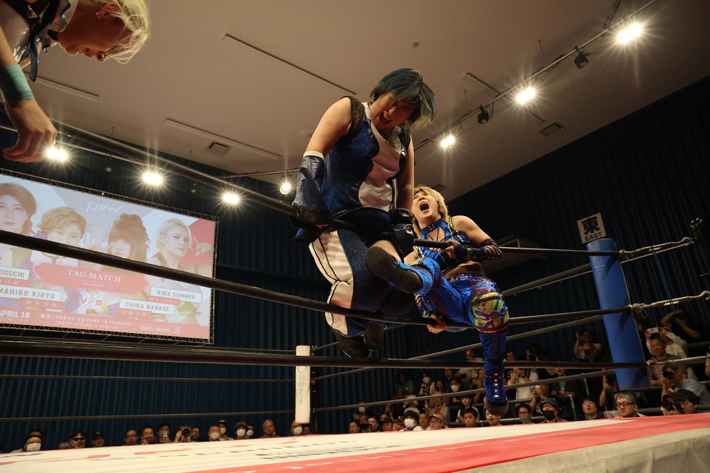 メイと小夏は昨年9月の大田区以来の対戦で初シングル。小夏の握手はメイが拒否して場内ブーイング。メイのダイヤル固めからのニコニコフォールに小夏もぶりっ子ポーズを見せるとメイは突き飛ばしエルボーの応酬。メイは小夏にアームツイストからフェースクラッシャー、さらに羽根折り固めを極めながら羊のぬいぐるみを奪って挑発。コーナーに羊をセットして小夏を投げんとするも小夏は叩きつけられることを拒否してエルボー連打。しかしメイはボディースラムを投げ返し、さらに羊を叩きつける。小夏は回転エビ固めからドロップキックで反撃。腕に噛みつくメイに小夏はドロップキックから串刺しドロップキック、ボディースラム、スリーパーと畳みかける。メイもサブミッションでやり返すが小夏がロープに足を伸ばす。ダイビング・フットスタンプは小夏が回避してオクラホマロール。カウント2で返されるとバンデーラから回転エビ固めもカウント2。こなつくらっしゅからひつじ座コメットを狙うが空を切るとメイがセカンドロープからの反転式フットスタンプ、そしてガトー・インビジブルでギブアップ勝ち。