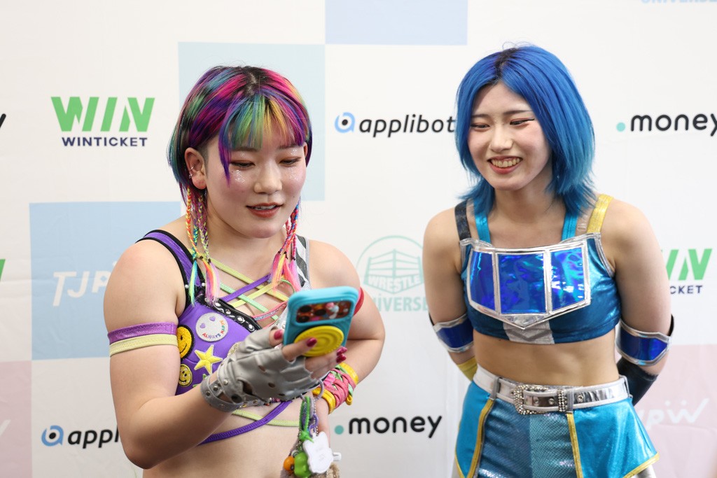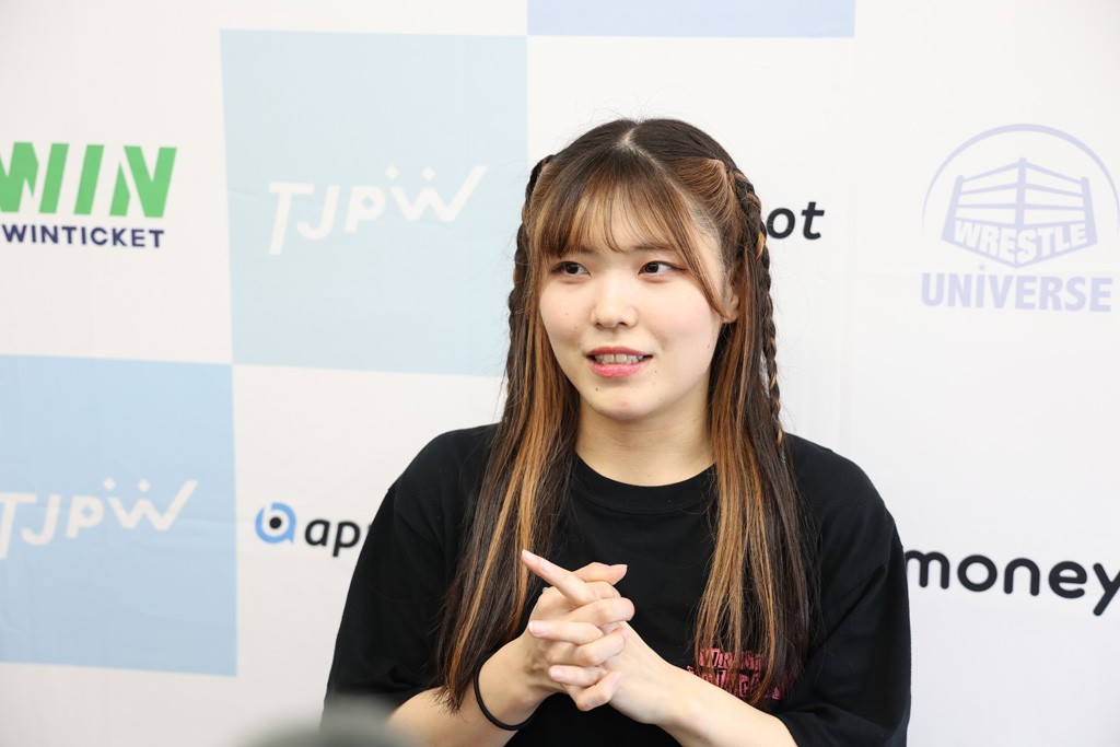 小夏 今日はインイタでインスピレーションということで、私はメイさんと約半年ぶり、前回は9月の大田区でタッグだったんですけど、今回はシングルで独り占めできるということで、私的に結構気合いが入ってて。もちろんお腹も空いてたし、大きいリンゴをもう芯まで食べ尽くしてやろうと思ってたんですけど、逆に食べられてしまいました。だけど、今日のシングルは私にとってすごく大きな成長できる試合になったと思うので、これからの自分のキャリア、もうすぐ 1年にもなるので頑張っていきたいなと思います。本日はありがとうございました。