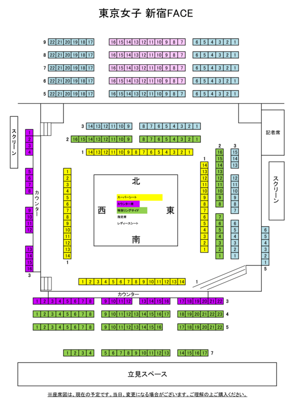 座席図は現在の予定です。当日、列数などが変更される場合がございます。予めご了承の上、チケットをご購入ください。