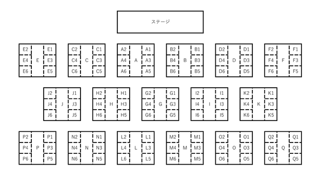 座席図は現在の予定です。当日、列数などが変更される場合がございます。予めご了承の上、チケットをご購入ください。